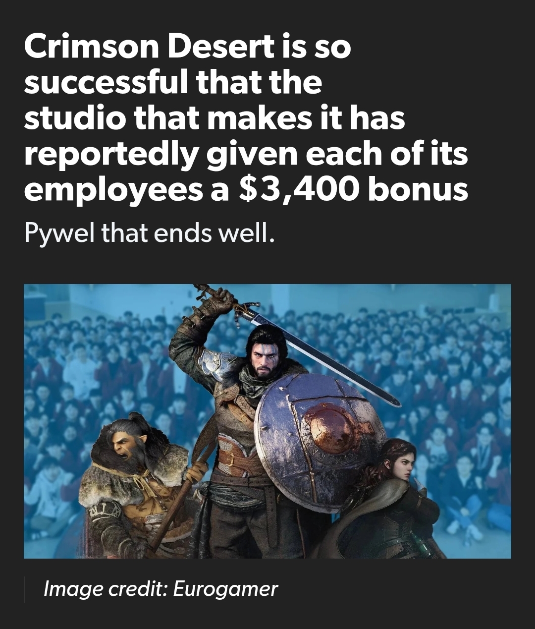 >Fromsoft gives all their employees a raise >Pearl Abyss gives their employees $3400>Shift Up gives their employees $3400, PS5 pros, Nintendo switches, and more Why don't western devs reward their employees when they make a successful game?