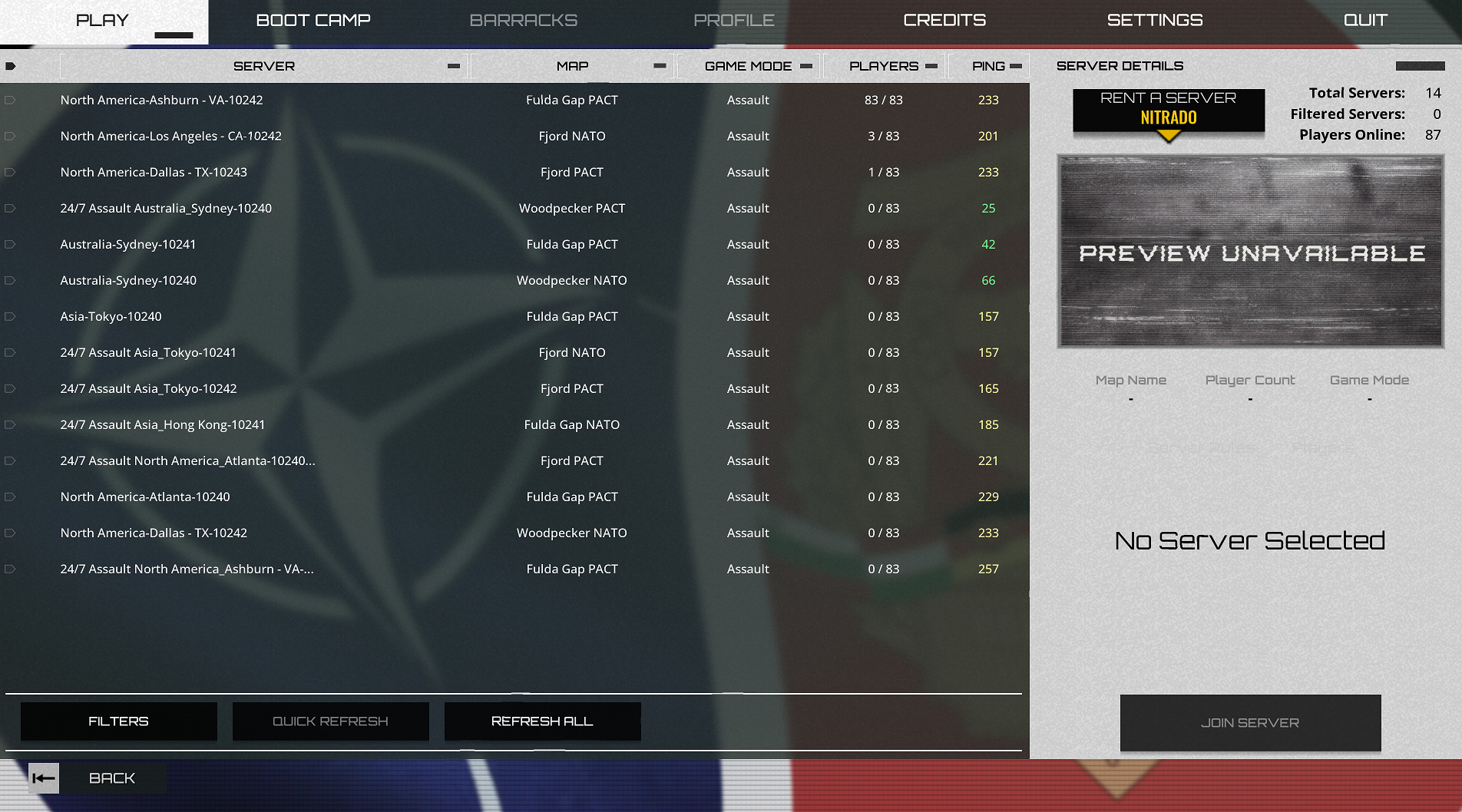 Only populated server is a North American server, a single one.For all of Europe, Australia too. 300 ping. Player count is sitting at 90, 3 days into launch...