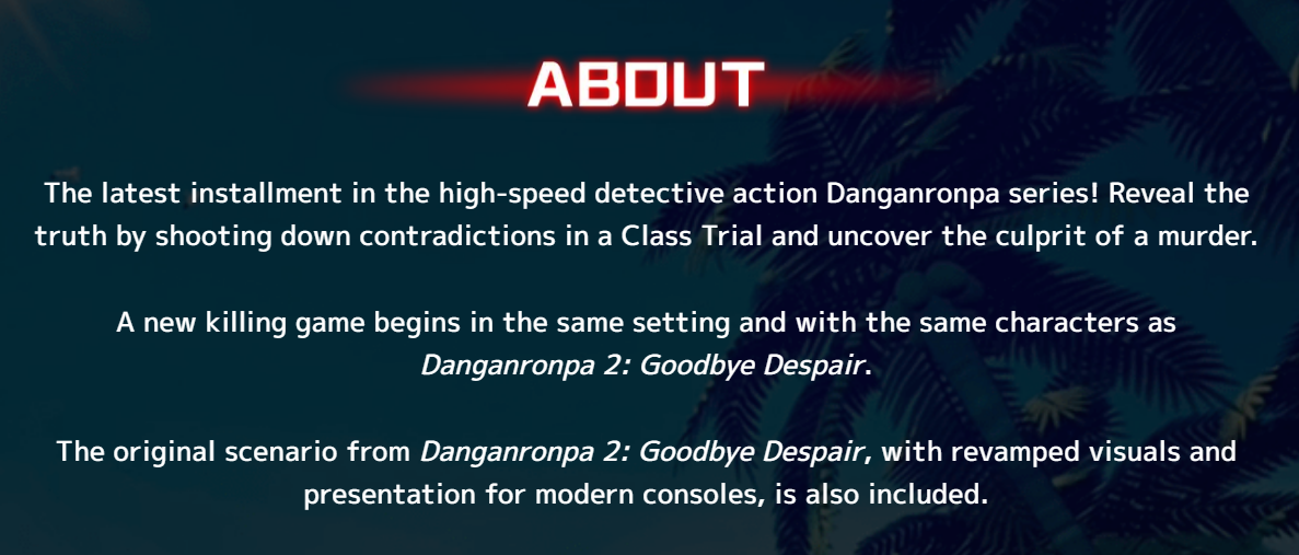 >>7378634322x2 is an entirely new game featuring the same settings and characters from SDR2, with an option to play the original scenario using remastered visuals as well. That's how they've been consistently describing it.