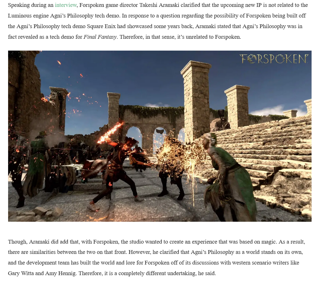 >>737868550I have a weird question.Forspoken was not cheap to make. It was ruinously expensive. But this game was made at the height of the isekai craze! You could easily make THE isekai game about some Japanese high-school student ending up in a fantasy world, running around and blowing up monsters with his OP powers, and fucking a host of hot girls with some fade-to-black romance.Isekai fans are slop enjoyers, something like this would have sold a hefty chunk along the lines of the Neptunia games. But they didn't do that. It was like they went out of their way to make the game as UNATTRACTIVE as possible.I'm just asking why. Everything in this game is deliberately, hideously ugly, when they could have populated it entirely with anime girls and had a Kirito-clone as the protagonist. There was basically no reason for this game to ever have been made.