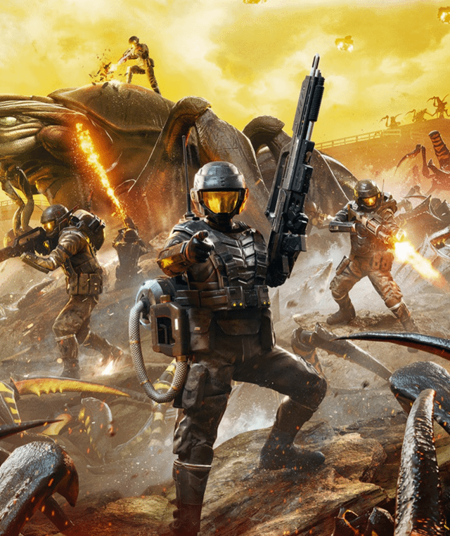 HELLDIVERS 2 is a 2024 co-op, squad-based, PvE 3rd person shooter for PC, PS5, and Xbox Series X/S where players fight against hordes of alien insects, robots, and squids to spread Managed Democracy. Players wage war on a number of contested planets, each with a different environment, completing as many objectives as possible within a procedurally generated area while constrained by a time limit. With enough successful operations a planet can be completely liberated, and the player base must cooperate to try to liberate the entire galaxy by focusing and combining their efforts as much as possible.