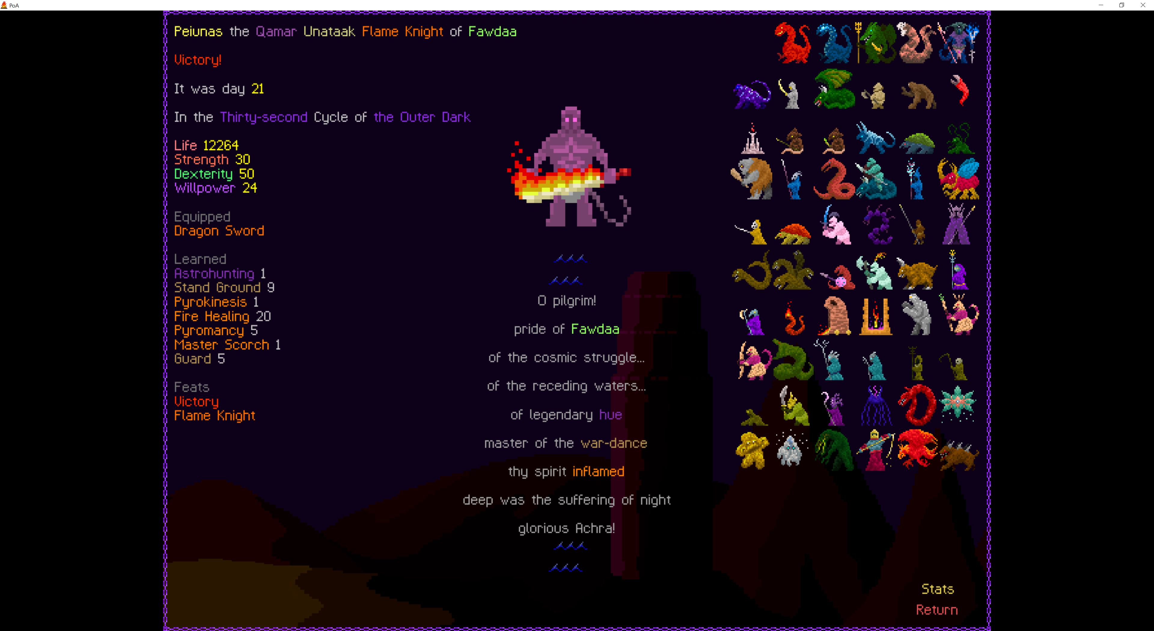 Previous thread: >>555668897Featured game by thumbnail: Path of Achra>Are mystery dungeon games allowed in this thread?Generally yes, most mystery dungeon games(Shiren the Wanderer, Pokemon Mystery Dungeon, Etrian Mystery Dungeon, etc.) can be considered roguelikes>Is Elin/Elona allowed?Yes, they are roguelikes. Please do not post your Little Sister farms>Is Dwarf Fortress allowed?If it's adventure mode, yes. But adventure mode is boring. /tg/ has a general for fortress mode playthroughs but you can share here too!>FAQhttps://l.idrix.fr/J7sOv>What to Playhttps://l.idrix.fr/eYNOh>Individual Game Pastashttps://l.idrix.fr/wXd8tComment too long. Click here to view the full text.