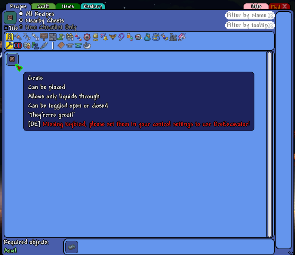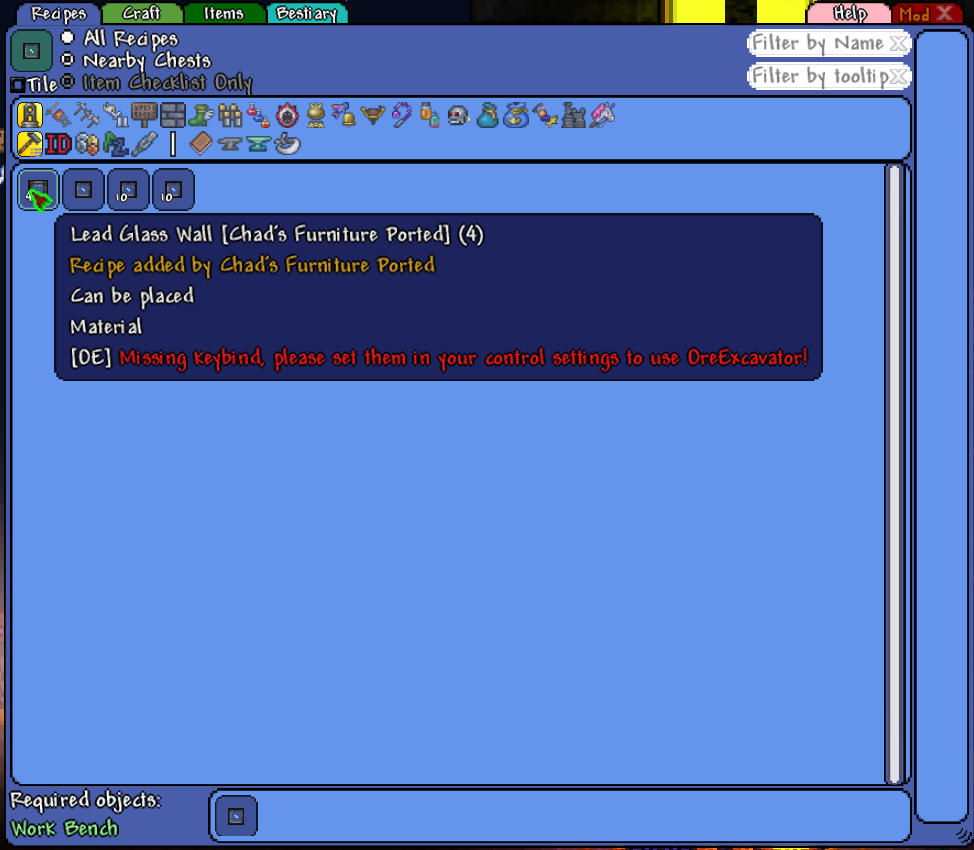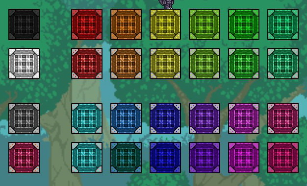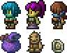 weapons (melee/ranged/mage/summoner)consumablesammotoolsarmorvanity armoraccessoriesvanity accessoriesequipmentdyespotionsmaterialswiringoresfurnitureblockswalls