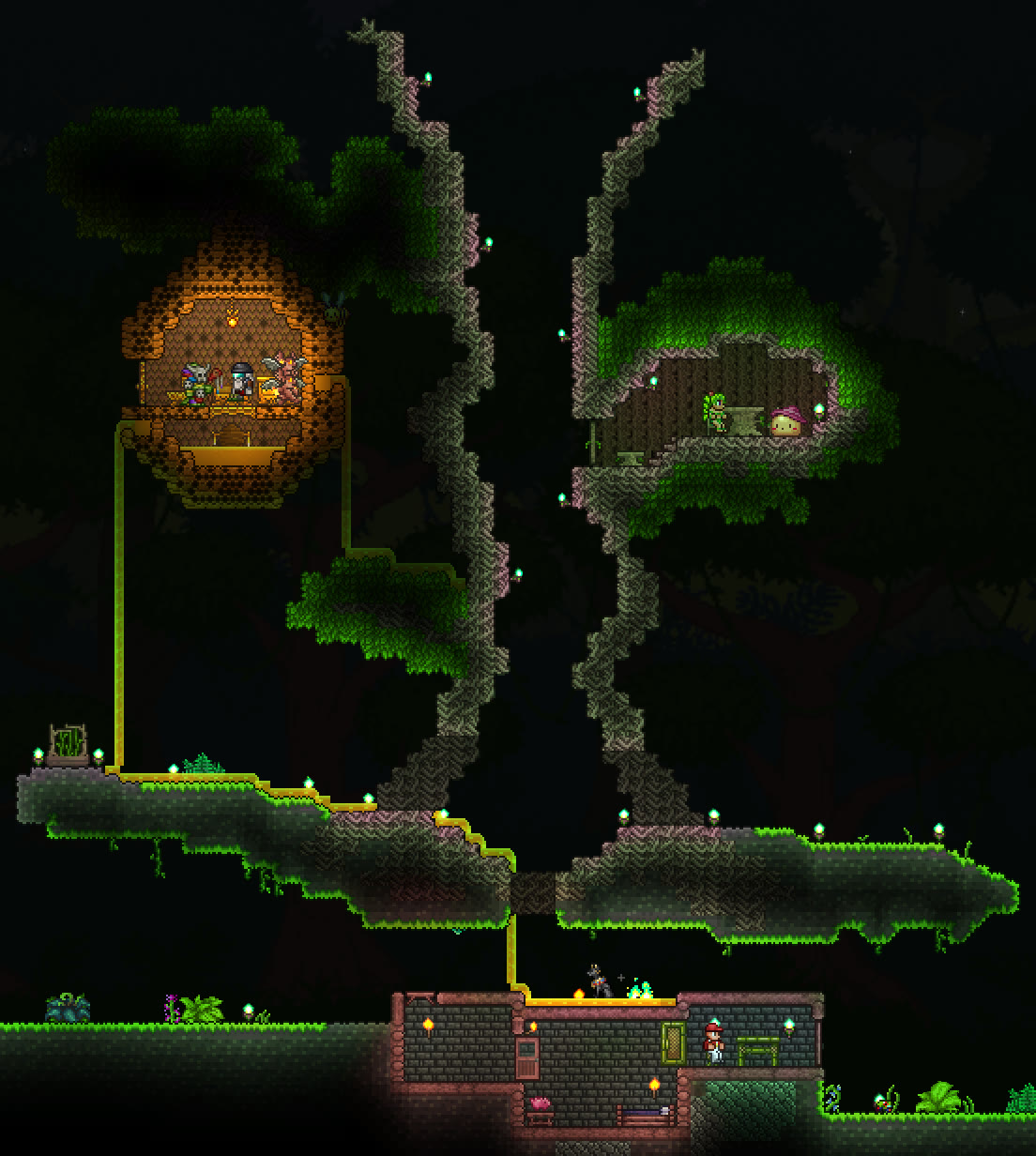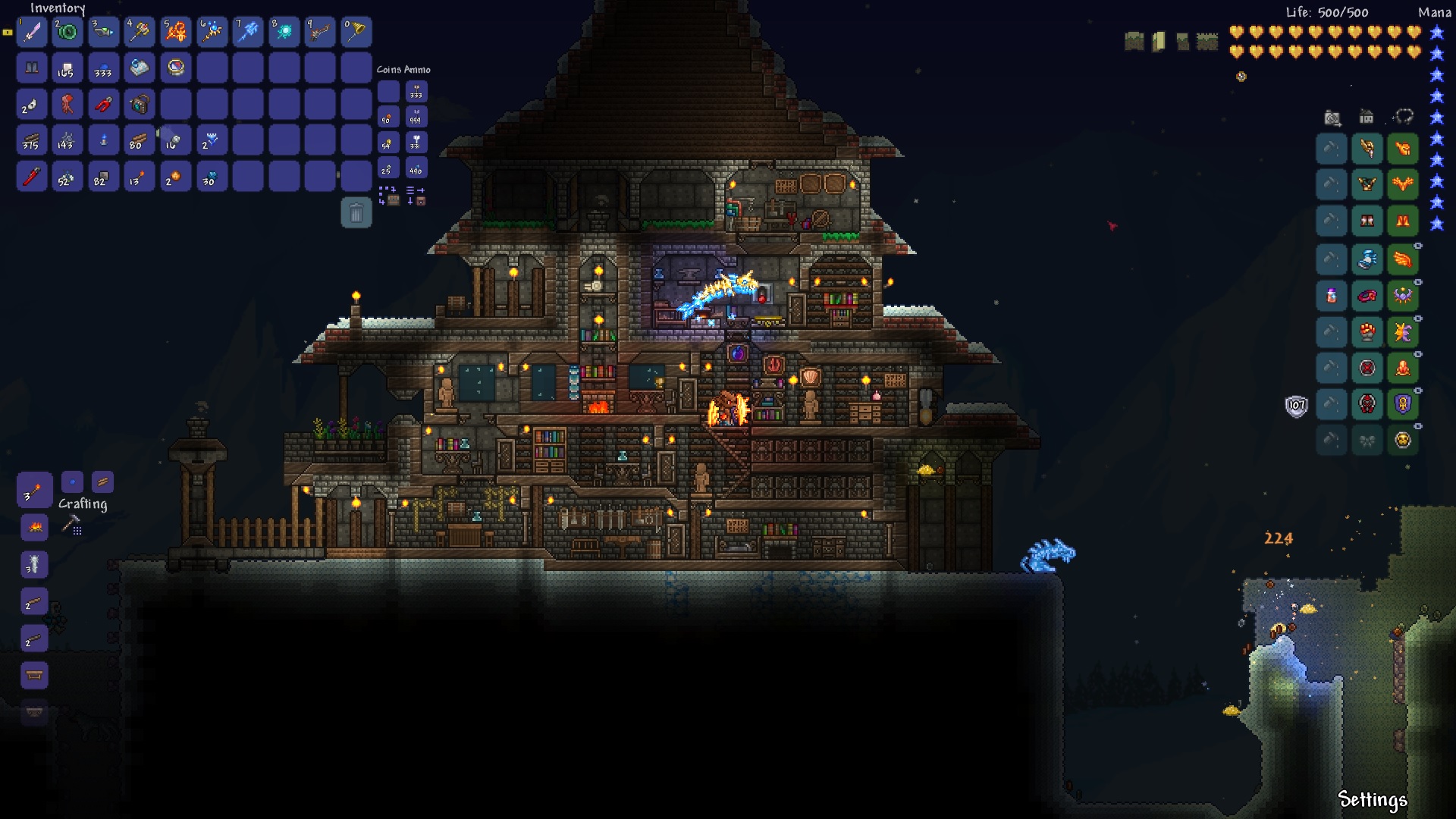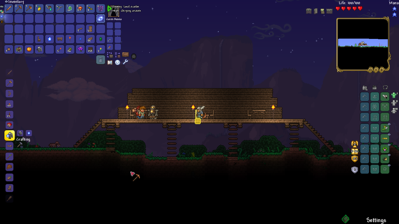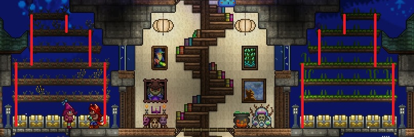 >>542693315I like what you've done with the engine/boilerShips and by extension, building are indeed difficult thoughWish I could help>>542694893Hmm, I know you have to be ~47 tiles away vertically to avoid spawns altogether, so you might be too close to the ground? Are there any NPCs shacked up there perchance? They lower spawnratesI'd still recommend making the artificial jungle biome to see if it helpsThis image might be useful as well