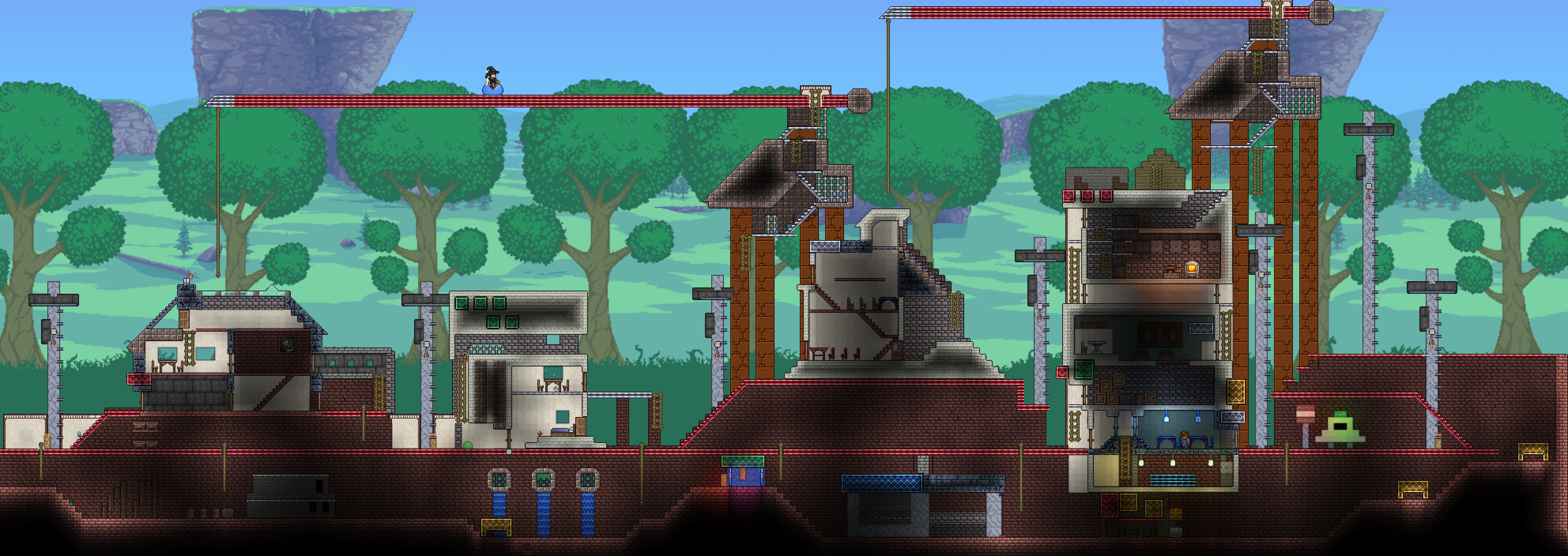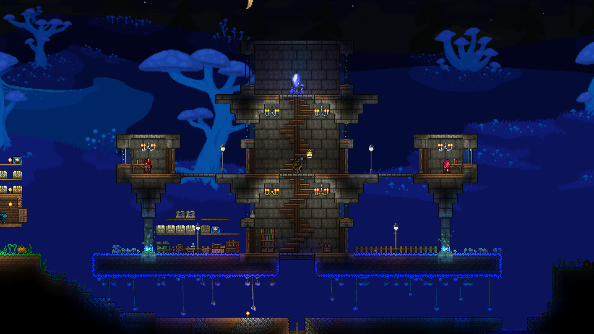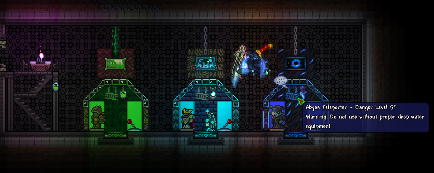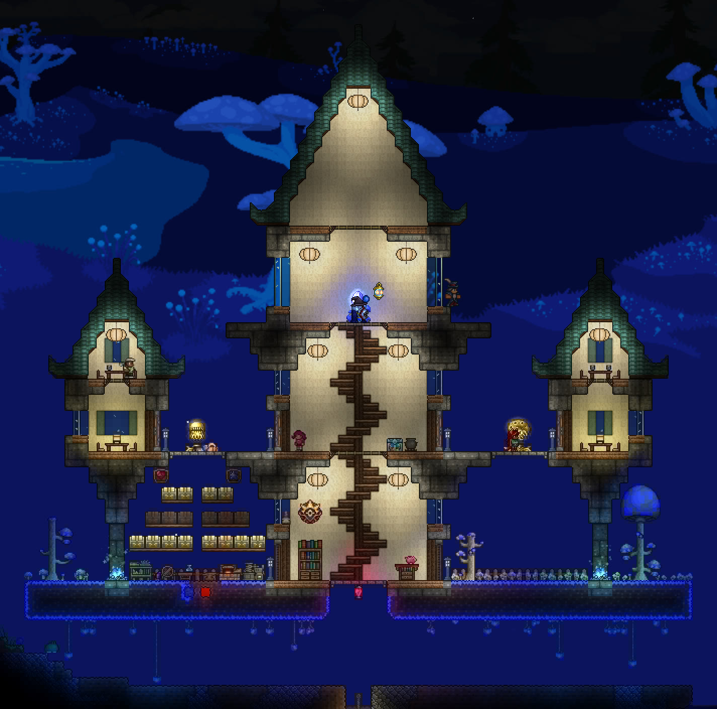 >>542753167>>542762759Responded a bit too early, but again, looks great!As for fishing spots, they need 300 tiles of connected water blocks to not incur penalties, but can be made with less. Also, water that is pressed up against the underside of an overhang doesn't count as "connected", so your "valid fishing area" is only about as wide as the opening on top, and it goes straight down in a rectangular shape. It's really not that big a deal if it's mainly for aesthetics.You can read up a little more on it here if you're interested:https://terraria.wiki.gg/wiki/Fishing#RequirementsAll that being said, again, the tree looks fantastic and much better than anything I could make.>>542775004Progress!If I may, I'd suggest perhaps putting a few iron crates or barrels in the cargo hold, maybe with a pile of black-painted copper coins to look like coal? The after propellers could also be sliiighly more tightly packed, imo. I think the party girl also sells a smoke machine that you could potentially add in later, and paint with echo paint to turn it invisible.