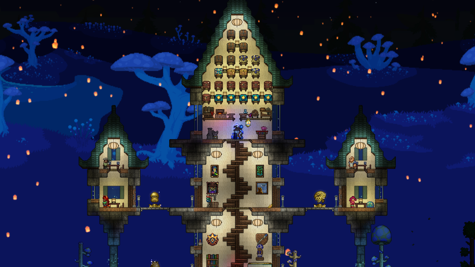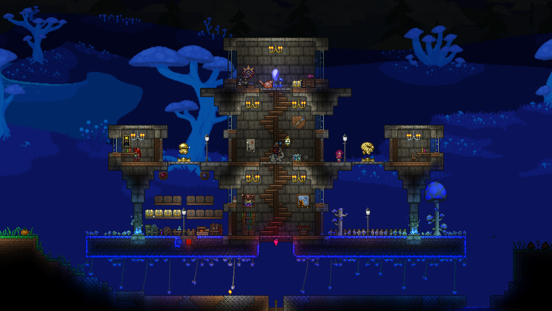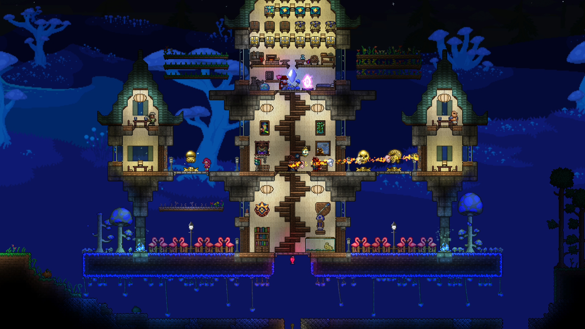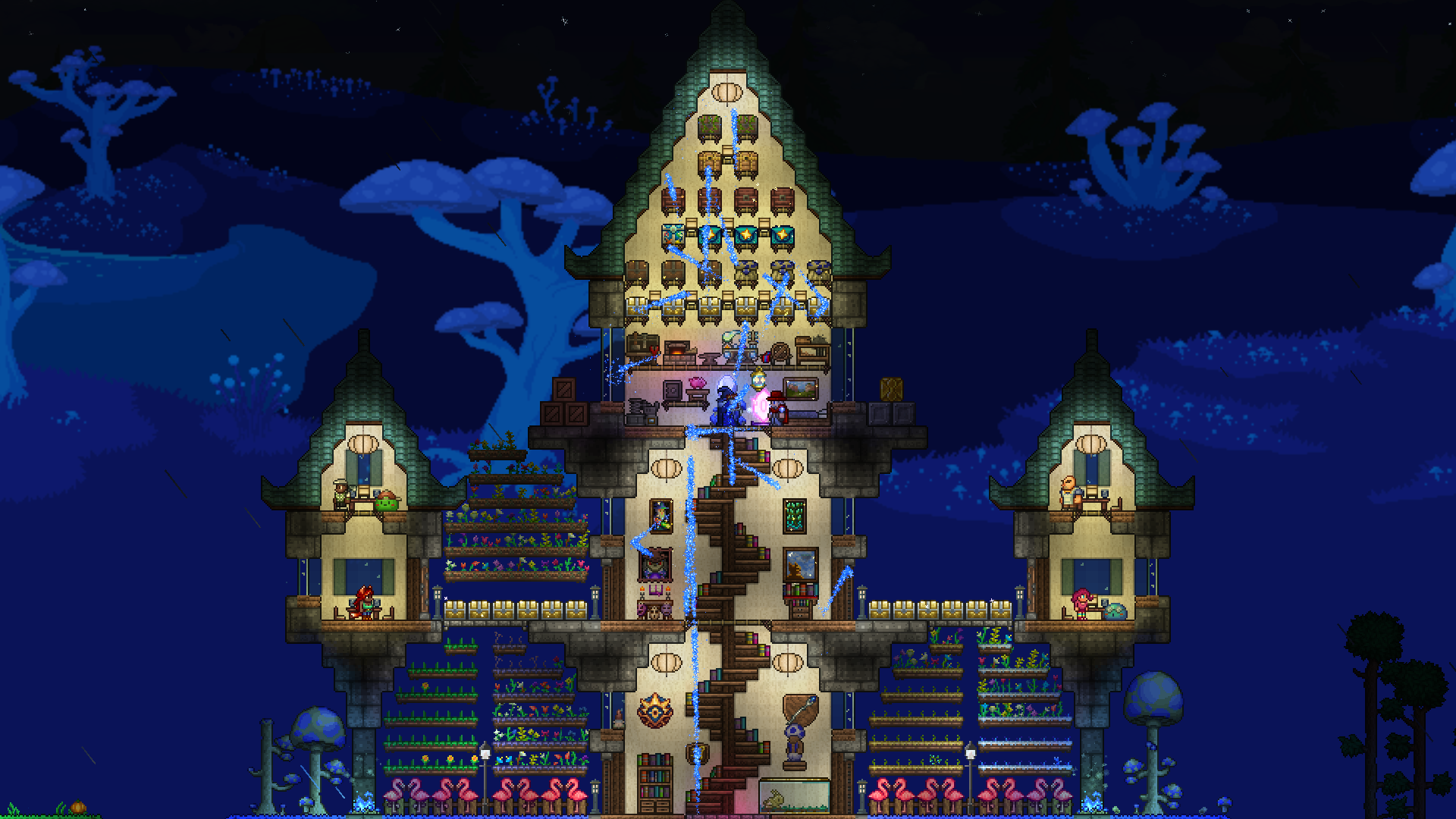 >>542753167>>542762759Responded a bit too early, but again, looks great!As for fishing spots, they need 300 tiles of connected water blocks to not incur penalties, but can be made with less. Also, water that is pressed up against the underside of an overhang doesn't count as "connected", so your "valid fishing area" is only about as wide as the opening on top, and it goes straight down in a rectangular shape. It's really not that big a deal if it's mainly for aesthetics.You can read up a little more on it here if you're interested:https://terraria.wiki.gg/wiki/Fishing#RequirementsAll that being said, again, the tree looks fantastic and much better than anything I could make.>>542775004Progress!If I may, I'd suggest perhaps putting a few iron crates or barrels in the cargo hold, maybe with a pile of black-painted copper coins to look like coal? The after propellers could also be sliiighly more tightly packed, imo. I think the party girl also sells a smoke machine that you could potentially add in later, and paint with echo paint to turn it invisible.