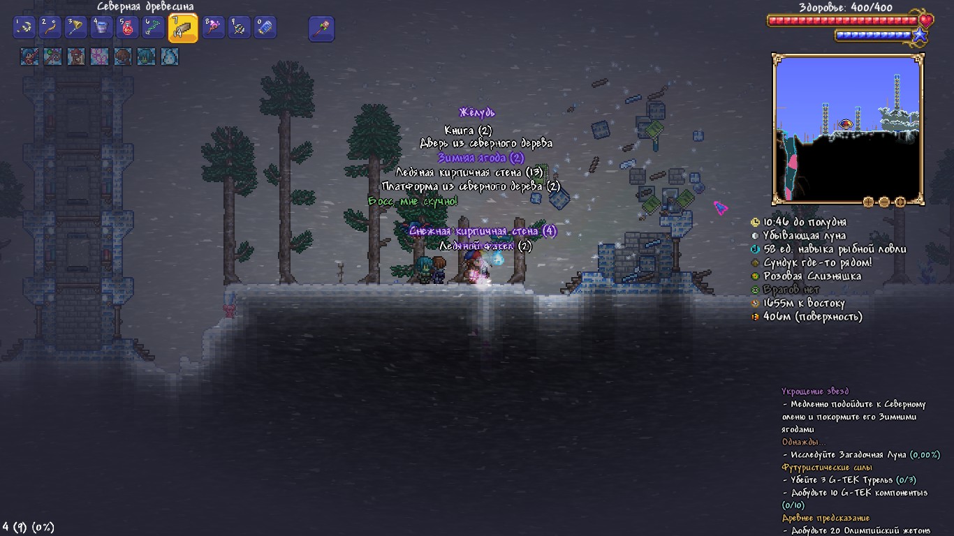 just got done farming for an obsidion rose so i could make terraspark boots. have also gotten everything for a cell phone so made that as well. have tried fishing in hell for the demon conch to make a shellphone, but no luck so far. also searched the jungle far and wide in order to find mahogany wood and leaf wands. needed that since i am going to try to make a big tree as a jungle base before killing the wall of flesh. but stopping for tonight. good night everyone, sweet dreams.>>542663034thanks for the advice!