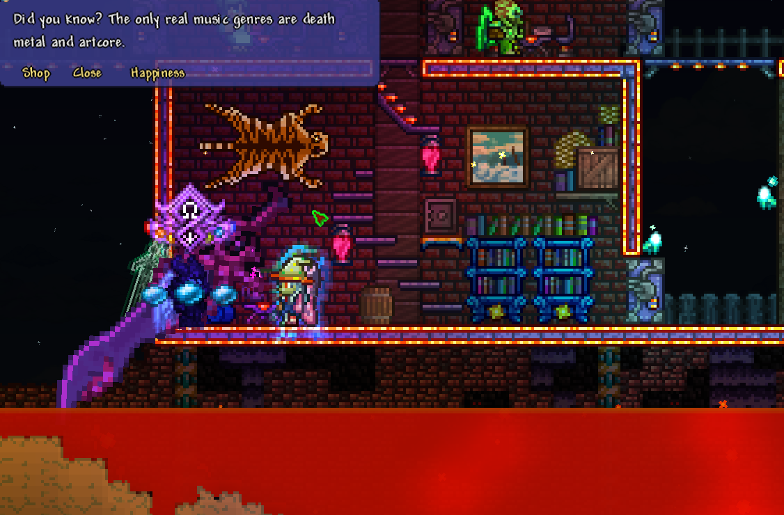 >>542549760shooting flaming skulls? Oh yeah, now we're on some real wizard shit. Shadow wizard $gang, baby. Also I'll go ahead and post this build suggestion for later since I know you have queen bee coming up soon - for the display room for that one you could do a little house made of hive and honey hanging from one of your living trees somewhere, maybe toss the Witch Doctor in there with some furnishings if it's in the jungle. Just an idea for later, I know you've still got other stuff on the check list first.