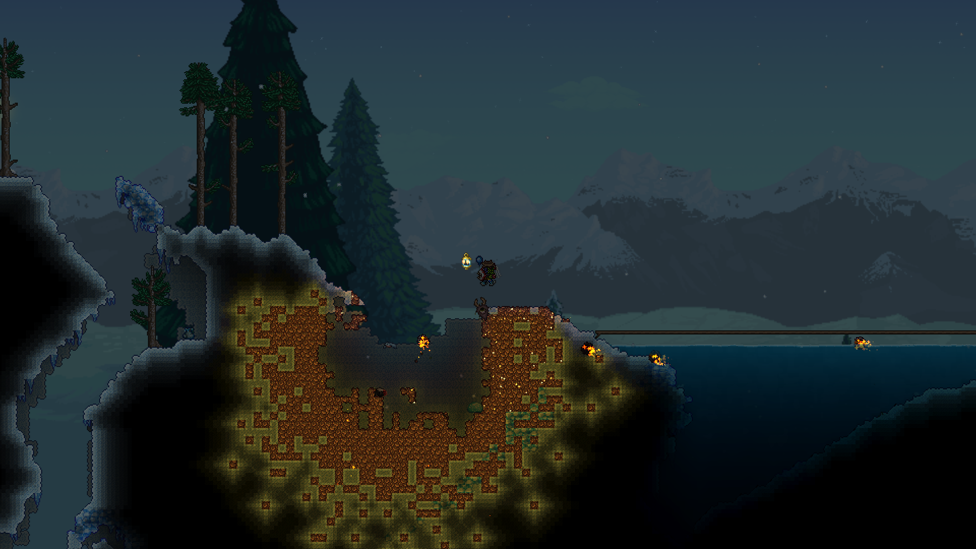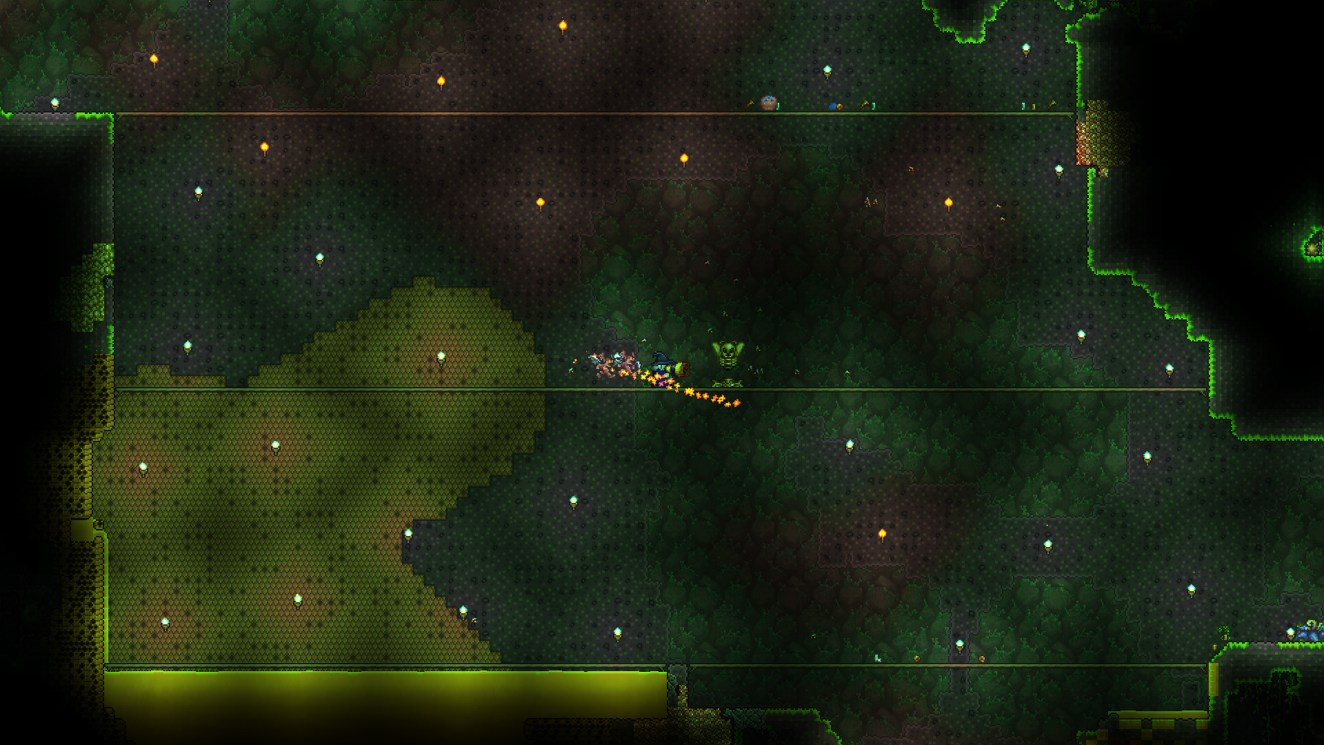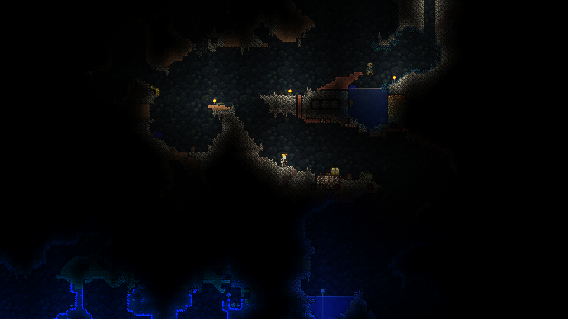 >standing in front of the water candle>60 tiles to the top of the first cavern>90 tiles to the edge of the fishing spot>200+ tiles of flat terrain to the right>nothing above meso why does barely anything spawn?