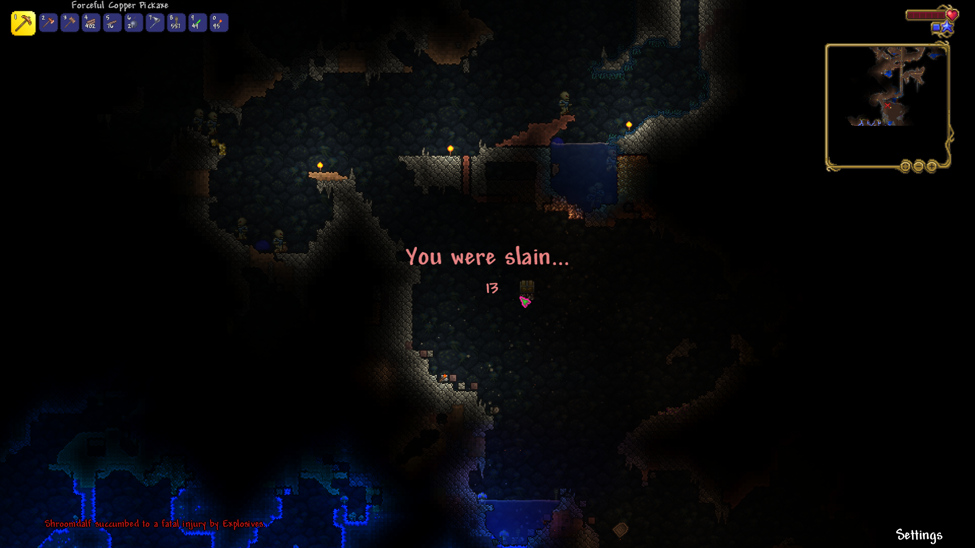 >it's time to stop dropping playthroughs on WoF>kill WoF>it's not so bad>spread: OFF (thx, tmod)>walk on the surface>crimson is where jungle used to be>knuckles_oh_no.wav>check the map>my jungle got a piercing shit smear of crimson through its middlewhat a great startat least the crimsoned mud blocks are still mud, probably thanks to one of the other mods I have