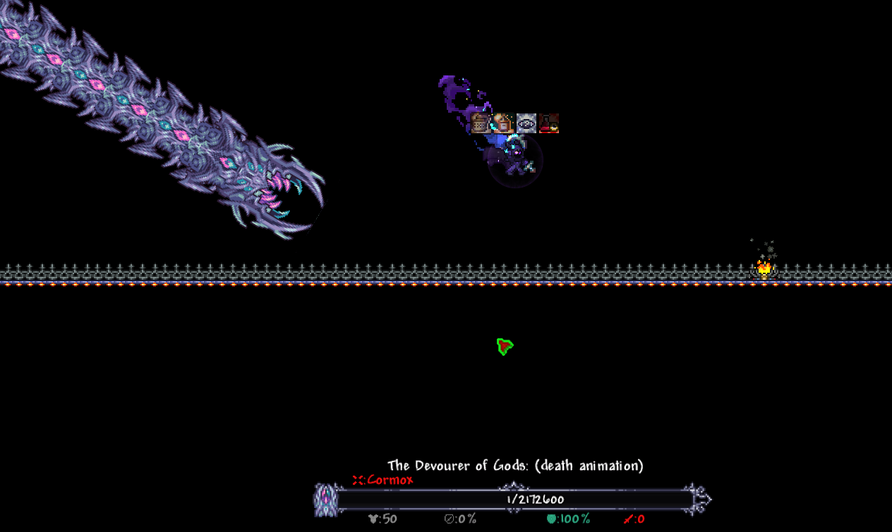 >defeating the first Calamity Fables boss gives you some sweet armor and a free mountFinally, I don't have to cheat a blessed apple in from another character.