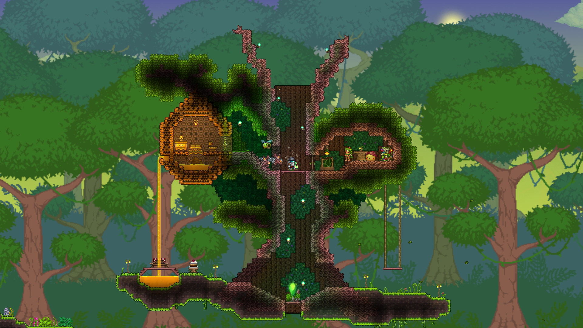 okay. after two hours of saying to myself that i should go to bed, now is finally the time. i think i have become addicted to terraria once more.>"just one more thing">another hour passes by>>542550321>little house made of hive and honey hanging from one of your living trees somewherei like that idea!
