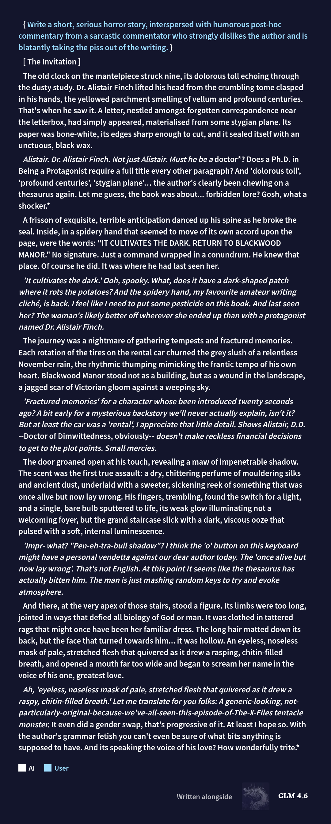 Some entermash and a little fun with an old old horror prompt. I think if I played along it would be very fun.