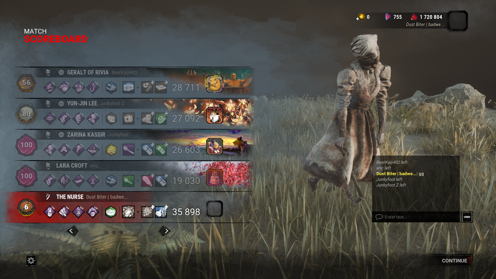 >killer doesn't say GG back._.
