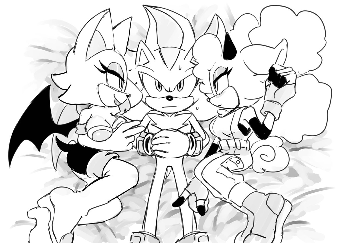 > Sonic and Amy hugging> Sonic and Blaze holding hands> Sonic princess-carrying Surge> Sonic getting kissed on the cheek by Rouge