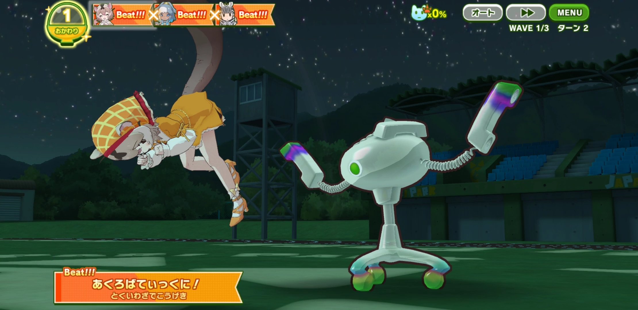 Oh good, a thread. Morioka City Zoological Park ZOOMO collab is ongoing, and our first friend is North American River Otter.>Kemono Miracle: Damages a single enemy, increases her own Try and Action damage by 30%, and increases allies' Beat damage by 15% for 3 turns.>Beat: Damages a single enemy, and increases light blue allies' Beat damage by 8% for 2 turns.>Standby: Increase own MP by 30. If the terrain is water-themed, gain an additional 10 MP. 100% activation rate, 2 activations per battle.>Wild Release: Increases light blue allies' resistance to Mismatched Rhythm by a high amount, and increases own Try damage dealt by 30%.>Photo Slot: Increases own damage dealt by 15%. If there are three or fewer opponents, increase own Action damage by 20%. If opponents are Ceruleans, increase MP by 4 every turn.A fairly straightforward friend this time. She has a big focus on Try and Action damage boosts, which are always weaker than Beat under normal circumstances. Her miracle requires 140 MP, but her passive traits help her get that MP somewhat quickly. She only has a single 25 MP Action flag, but she has three Try flags with two being yellow and one being red. She focuses on bringing additional plasm charging, which boosts overall damage the next turn, while buffing damage from using Try flags. At first she seems a bit silly, but this is actually quite the unique friend in terms of gameplay.North American River Otter is, as you'd guess, an otter! This species lives in the northern sections of North America as the name implies, being mostly found in Canada. Their habitats are being lost from the usual issues humans bring, such as environmental polution and overhunting, but on the bright side, their numbers are being carefully observed so that they do not become endangered. They are still hunted for their furs, but luckily they are of Least Concern according to the International Union for Conservation of Nature.