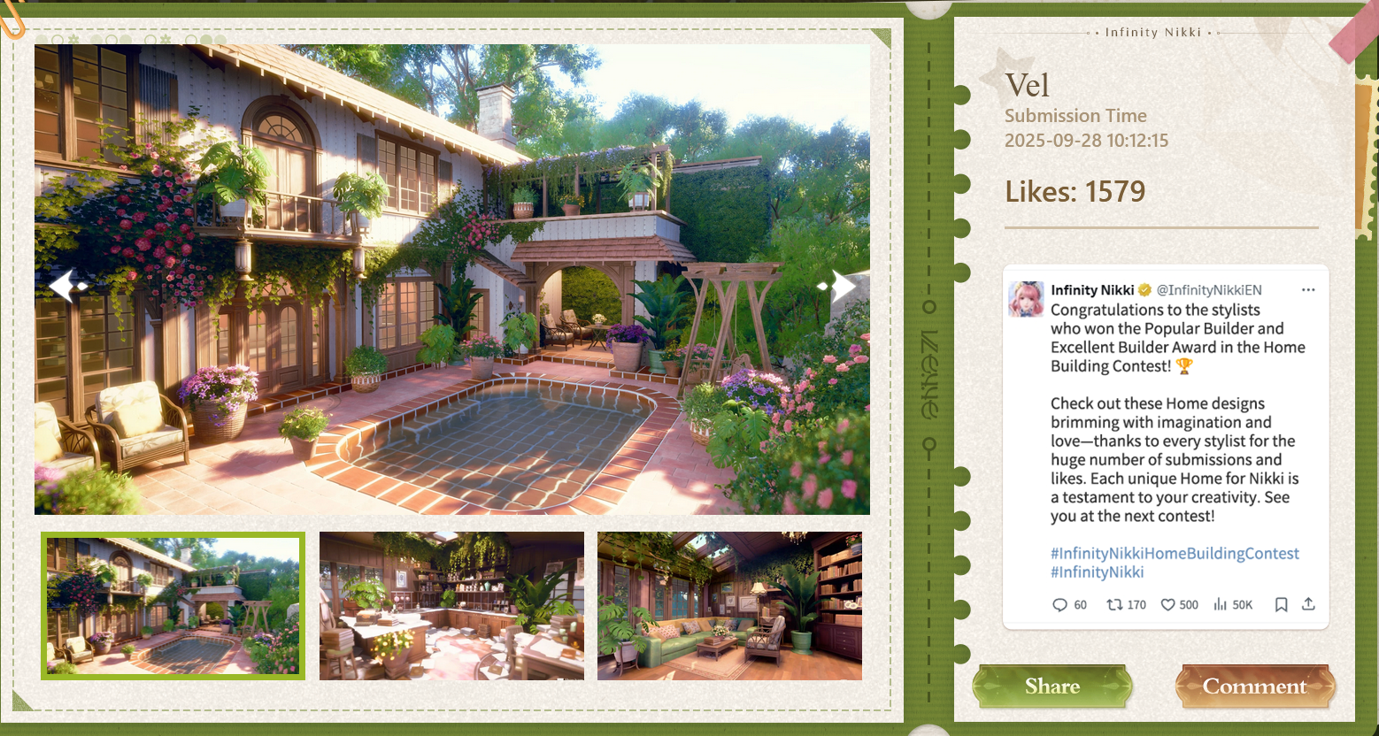 Previously on Wúxiàn Nuǎnnuǎn:>>540995505>Websitehttps://infinitynikki.infoldgames.com/en/home>Maphttps://pearpal.infoldgames.com/tools/map>Journalhttps://pearpal.infoldgames.com/tools/journal>Current EventsGolden SeasonExclusive Quest "The Golden Secret">MarketCelestial Diary 2/3 Free FornitureGolden Market: p2w stuffHome Sentiments: f2p stuffLimited time check-in (Ends October 13th)[YouTube] The official trailer for Version 1.10 "Golden Season" is now live! https://www.youtube.com/watch?v=ytzn3Xz3yFc>Current resonancesBlossom on the Breeze 5*Grains of Yesterday 4*Distant Sea: Permanent>Codes>TOGETHERTOTHESTARS>nikkisbestcompanion>YINYUANGIFTDChttps://rentry.org/NikkiCodeshttps://infinitynikki.infoldgames.com/proj/redeem_code.html>Databasehttps://infinitynikkilibrary.com/database/