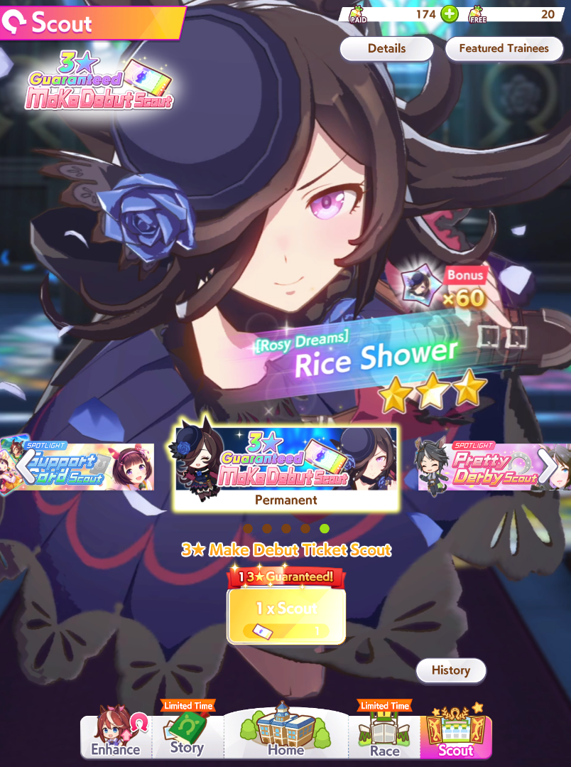 Previous: >>542039573>JP Game NewsCurrent Rate Up: Hishi Akebono (Alt 3*), Marvelous Sunday (Alt 3*), Fuji Kiseki (SSR), Eishin Flash (SSR)10/7 - Legend Race vs NTR and Super Creek (Alt)Early October - Tachyon's Factor ResearchLate October - New training scenarioOctober: CM Sprint - Niigata 1200mNovember: LoH Dirt - Morioka 1600mDecember: CM Mile (No debuffs) - Hanshin 1600m>Global Game NewsCurrent Rate Up: Fuji Kiseki (3*), Gold City (3*), Mejiro Ryan (SSR), Mejiro Ardan (SR), Nishino Flower (SSR), Vodka (SSR)10/7 - CANCER CUP - Tokyo 1600m10/14 - Summer Maruzensky (Alt 3*), Summer Special Week (Alt 3*), Sweep Tosho (SSR), Winning Ticket (SSR)10/14 - Summer Story event10/21 - Meisho Doto (3*), Special Week (SSR), Tokai Teio (SSR)10/26 - Half Anniversary Part 110/30 - Eishin Flash (3*), Nice Nature (SSR), Tosen Jordan (SR)10/30 - LEO CUP - Hanshin 2200mTimeline: https://uma.moe/timeline>IP NewsUmamusume Cinderella Gray 2nd cour will air on 10/5Umamusume 6th Live Event Autumn Leg will be held on 10/18-19Guest Starring:Alexandros, Ooishi Masayoshi (Day 1), Kageyama Hironobu (Day 2)https://umamusume.jp/contents/event/tnf6th-autumn/>Thread CirclesJP: ウマオオオオ (20 million/month), PUMA, ウマぴょいのまにまに (No quota)EN: https://rentry.org/globalclubsumaYou must be E3 (20k points) to join a circle. Apply with /uma/ or /vg/ in your profile or post ID in the thread.>All Guides & Resourceshttps://rentry.org/uma26Game databasehttps://gametora.com/umamusume (Click the gear to switch between JP / global server info)A basic guide for newfagshttps://rentry.org/umaglobalFind networks if your region is blocked from the game or clienthttps://www.umavpn.top/93Seiyuu & Concertshttps://rentry.org/umst/uma/ POG (Paper Owners Game)https://rentry.org/umapog