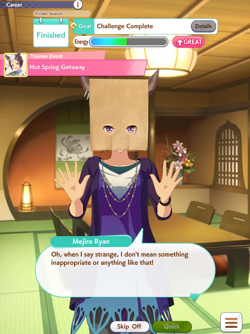>>542077227Your Umas have finally learned that the only way to win is to not play.