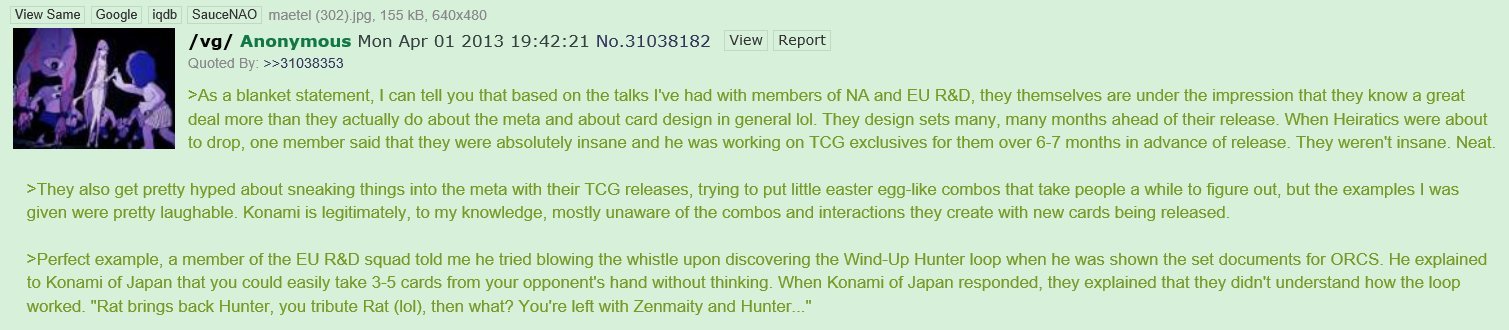 >>542147275You make it sound like they were that big outside of their spell>>542147340I be more excited if I see Harpie LARTs, Abyss part 2 or Northwemko support. But the first two are being heavily delayed while the third one would take a miracle to happen by this point.