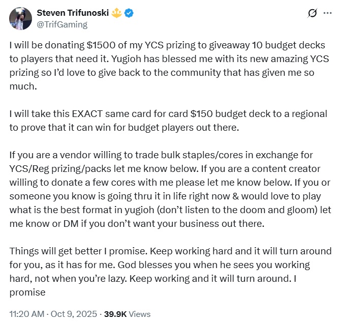 #6617 - The Terminal World Support Wave that's just the Second Post-Anime Bandaid Wave for a DT Archetype that didn't get saved with the first one EditionPrevious: >>542013163>SimulatorsAutomated:●EDOPro (PC/Android): https://projectignis.github.io/download.html●Master Duel (Multi-plat): https://store.steampowered.com/app/1449850Manual:●Duelingbook (online): https://www.duelingbook.comTag: “/dng/” Password: “vidya”; on EDOPro, specify server.Genesys Duels: MR5, TCG, Custom Rules: No Links/Pend/EMZ/Pend Zones>LinksRulebook: https://www.yugioh-card.com/en/rulebook/Wiki: https://yugipedia.comProbability Calculator: https://yugioh.fyiStock Market: https://yugiohprices.comDatabase: https://www.db.yugioh-card.comMisc Info: https://www.formatlibrary.comBlog:https://yugiohblog.konami.com/Alt Format:https://www.yugioh-card.com/en/genesys/>BanlistsTCG: https://www.yugioh-card.com/en/limited/list_2025-09-15/ (Sep 15/Next List: TBA)OCG: https://yu-gi-oh.jp/news_detail.php?page=details&id=2341 (Oct 1/Next List: Jan 1)>DecklistsOCG: https://roadoftheking.com https://tonamel.com/competitions?game=yugioh_ocgTCG: https://ygoprodeck.com/category/decks/tournament-meta-decks>NewsJP: https://yugioh-starlight.comEN: https://ygorganization.com>Upcoming SetsOCG:●Burst Protocol (Oct 25)●THE CHRONICLES DECK - The Fallen and The Virtuous (Oct 25)●Terminal World 3 (Nov 22)●DUELIST BOX -Prismatic Summon- (Dec 20)●THE CHRONICLES DECK - Charmer (Jan 24)●Blazing Dominion (Jan 24)TCG:●THE CHRONICLES DECK - The Fallen and The Virtuous (Oct 24)●Legendary 5Ds Deck (Nov 7)●Phantom Revenge (Dec 4)●Burst Protocol (Jan 23)●THE CHRONICLES DECK - Spirit Charmers (Jan 23)>Events●/dng/ Friday Night Tourney 4 (TBA)●/dng/ League S1 (Week 6, Oct 6-Oct 13):https://challonge.com/dngleagueseason1