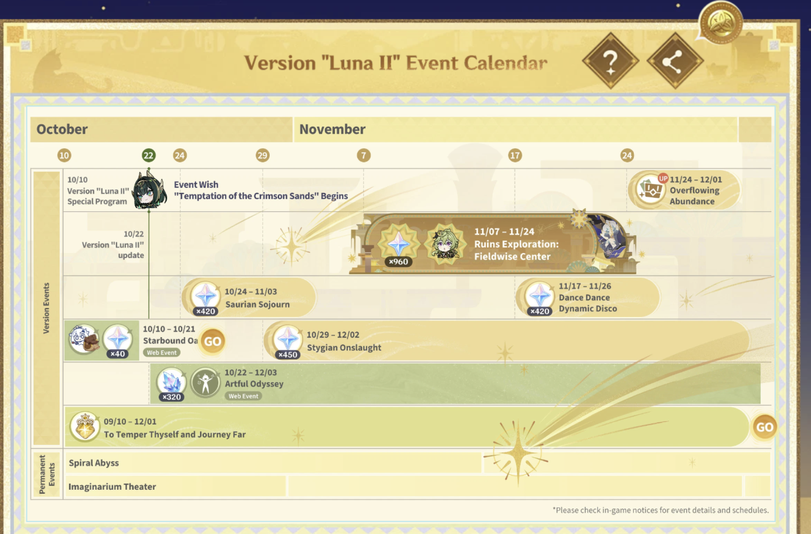 Previous: >>542123737Version "Luna II" Special Program Codes:Nefer1022Ashruhttps://genshin.hoyoverse.com/en/gift?code=Nefer1022AshruLunaII1022https://genshin.hoyoverse.com/en/gift?code=LunaII1022MiliastraWonderlandhttps://genshin.hoyoverse.com/en/gift?code=MiliastraWonderland>Version "Song of the Welkin Moon: Reprise" "An Elegy for Faded Moonlight" Trailer https://youtu.be/w50jW_iEXns>Miliastra Wonderland: Version "Luna II" Legendary Set Teaser https://youtu.be/nZA0vvO6EbU>Character Anecdote - "The Gem Scam"https://youtu.be/46q9MNa50Yo>5th Anniversary Theme Song: "The Long Way Home"https://youtu.be/OvHwco4OxDo >Character Trailer - "Flins: Nocturne Sentinel"https://youtu.be/bxya0iOjQMk (EN)https://youtu.be/cAgNUpAEUDo (JP) >Character Trailer - "Aino: Bing-Bang-Boom Super Inventor"https://youtu.be/POc2ByGpsW0 (EN)https://youtu.be/oWhE7o6ooNM (JP) >Character Teaser - "Flins: An Ancient Coin and a Pair of Eyes"https://youtu.be/IVwWIc8oNQg (EN)https://youtu.be/gMtB1FkpOsQ (JP) >Web Event "Tracing the Heart's Journey" live until October 12https://hoyo.link/JTFgdUBgq >Current character banner: Flins, Yelan, Aino, Sucrose, Dori>Current weapon banner: Blood-Soaked Ruins (Polearm), Aqua Simulacra (Bow)https://www.hoyolab.com/article/41345237 >Daily check-in rewards (permanent)https://webstatic-sea.mihoyo.com/ys/event/signin-sea/index.html?act_id=e202102251931481&lang=en-us >Redeemable Codes with Primogems (all regions): https://genshin.mihoyo.com/en/giftGENSHINGIFTEPIC2025R4SCAU7CR1G9GENSHINHIGH5FIGHT >Useful Links (Wiki, Simulators, Maps, Character Builds, /gig/ friendlist, Third-Party Tools, etc.)https://rentry.org/giglinks /gig/ OP pastebin (use this if making new thread):https://pastebin.com/ca0zseQ9