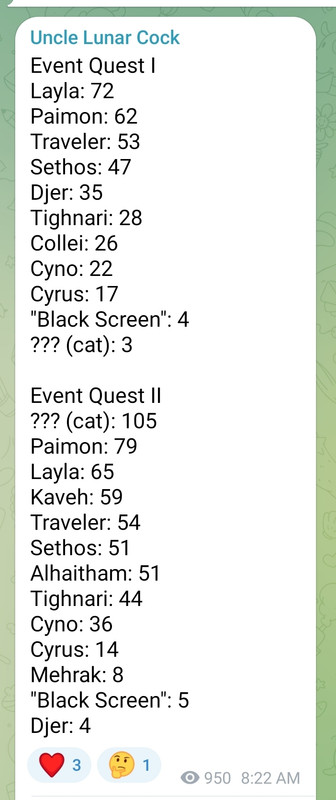 >>542140579>Kaveh is his own character while Alshitham cannot exist in a scene without himYep, I was a big fan of Alhaitham and I hate what they did to him. It's not just in the game. Kaveh also gets collabs with other characters while Alhaitham only got the faggot KFC one with Kaveh