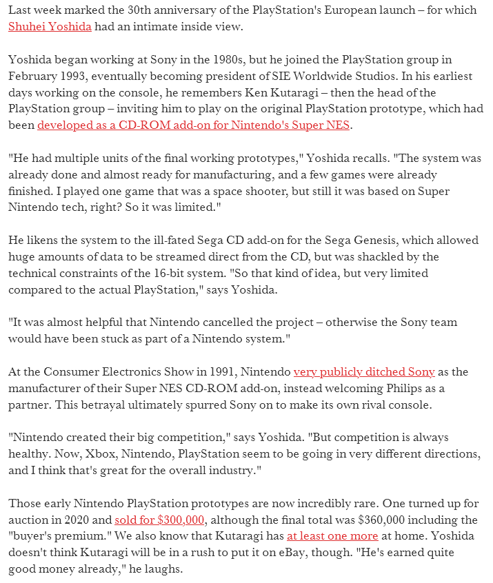 >Former PlayStation exec says Nintendo cancelling SNES PlayStation add-on was “almost helpful”
