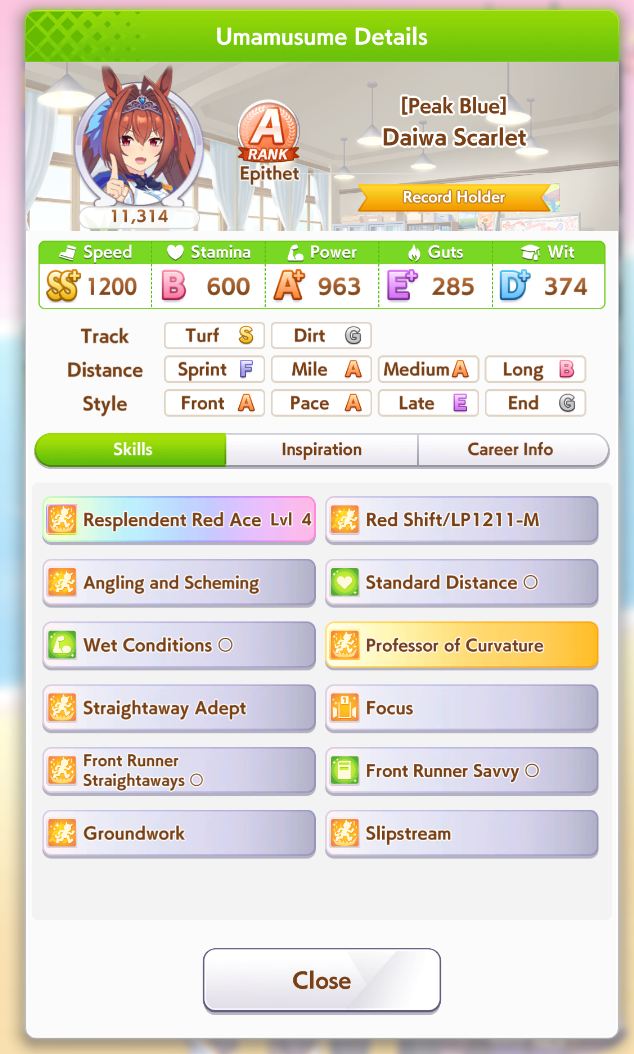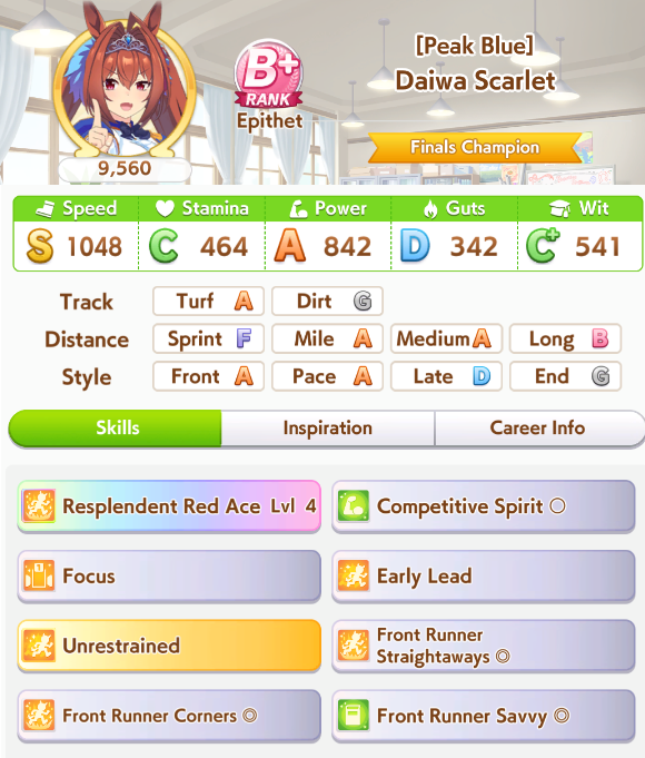 >>542230724No one has ever said to inherit red ace and Victoria happens late race when acceleration is good. Mid game acceleration is useless.