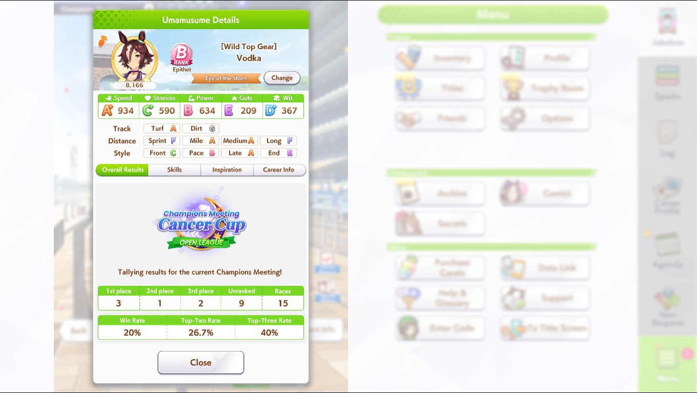 >>542219286Well to be fair I saw way more Oguri Caps than Vodka in my rounds but I'm probably an outlier. It was pretty cool to see a bunch of Wedding Air Grooves though!