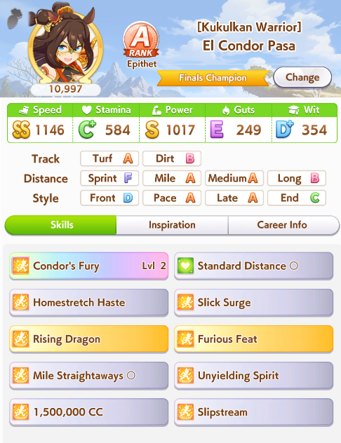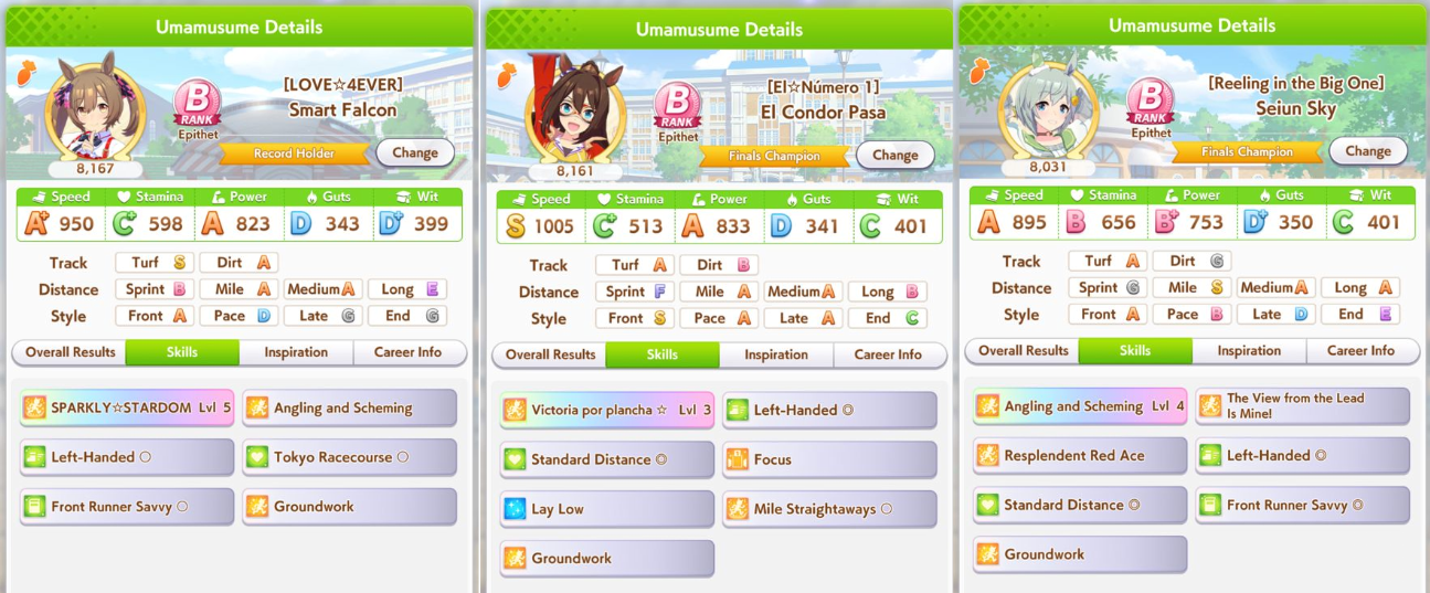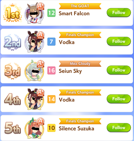 >>542245923>>542245430>>542245292Sparking Kitasan was a trap, you should always loan her if she's not 3LB+Pic rel is how speed SRs perform over SSRs. People sparking an power/stamina SSR at 0.75% will outperform Kita sparkers simply by having stronger cards around speed ones