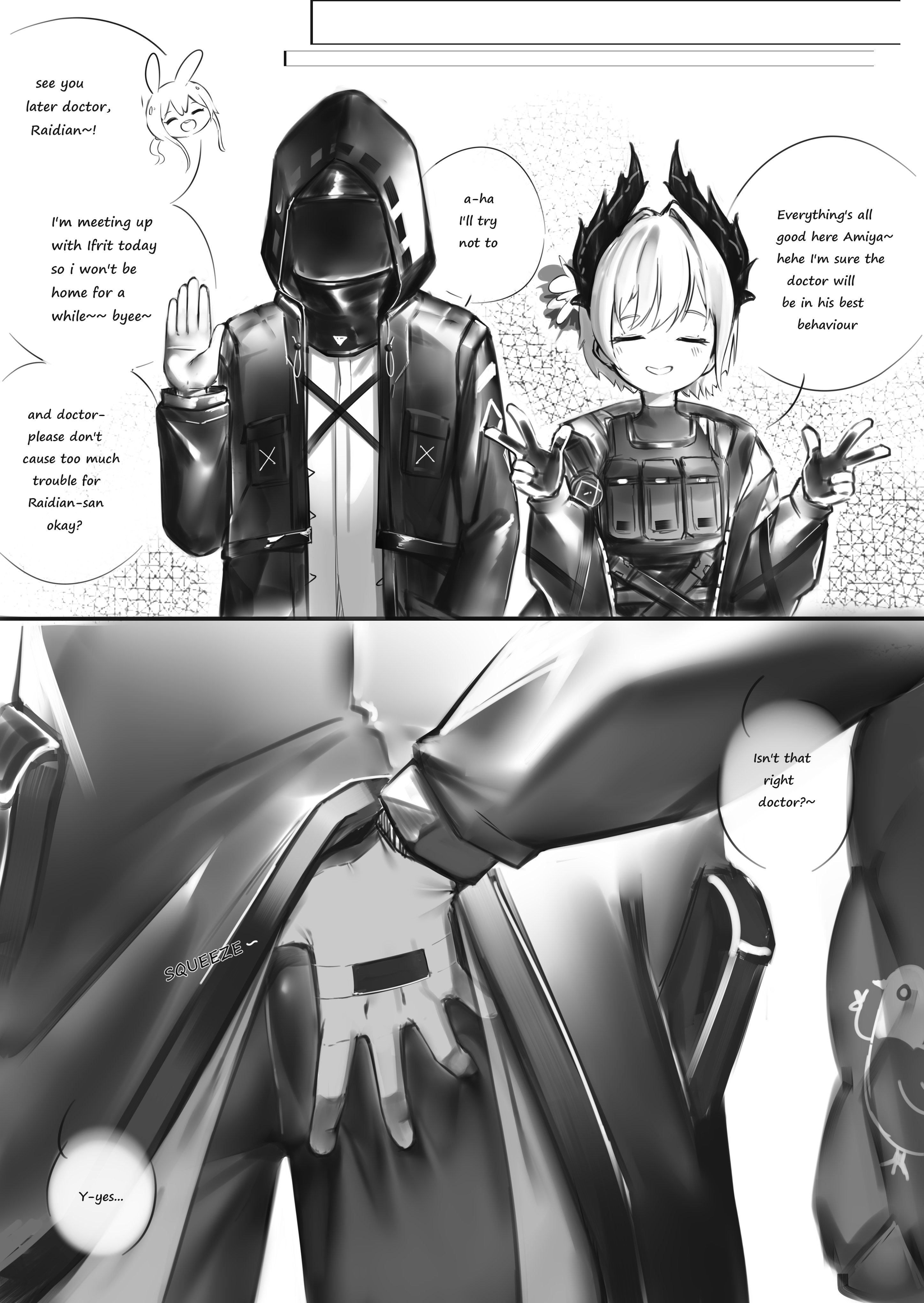 >>542283573"Do you need some rest, Madam Consul?""Please, call me Gladiia."Kal'tsit nods in silence. Their gazes meet."You are seeking like-minded people to find a way to save your country.""Yes.""So you need new companions.""Yes.""Then we can reach a consensus. But perhaps you should be seeking more than just that."Gladiia suppresses her surprise. She has always been good at hiding her thoughts, even when facing "herself" with the cruelest, most harsh attitude.Kal'tsit's gaze remains cold, but Gladiia does not feel it is due to indifference."Very well, Doctor. You've told your story. Now it is my turn to speak on the present state of Ægir... and the plans of its Chief Designer of Warfare.""Kal'tsit.""Very well, Kal'tsit." Gladiia gazes out over the ocean. "Let's start with a mother."Think there's the Mizuki operator record where she tells her she's not allowed to slaughter Mizuki too