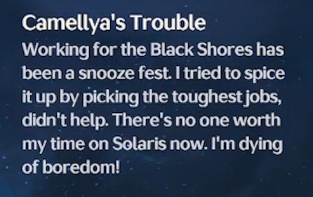 >I didn't catch your name. What is it?>Angel>Angel who?>Angel Skywalke- I mean, Angel, Black Shores Consultant