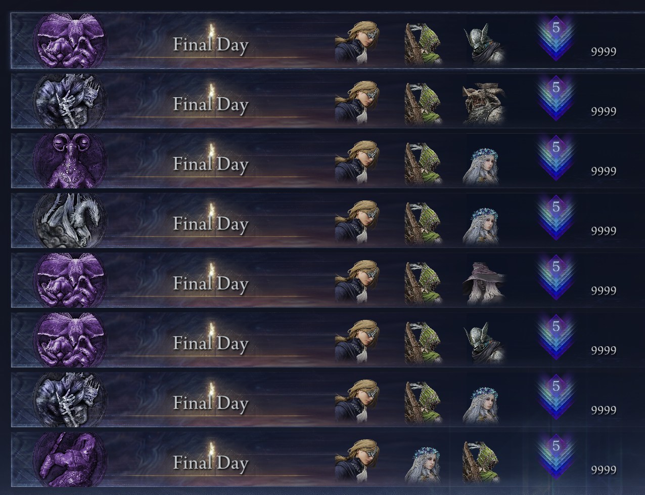 >>542278586There's a few anons who play Executor at depth 5 and they do well. Bleed and Frost scale well and dog form spam is good for full healing and reviving.