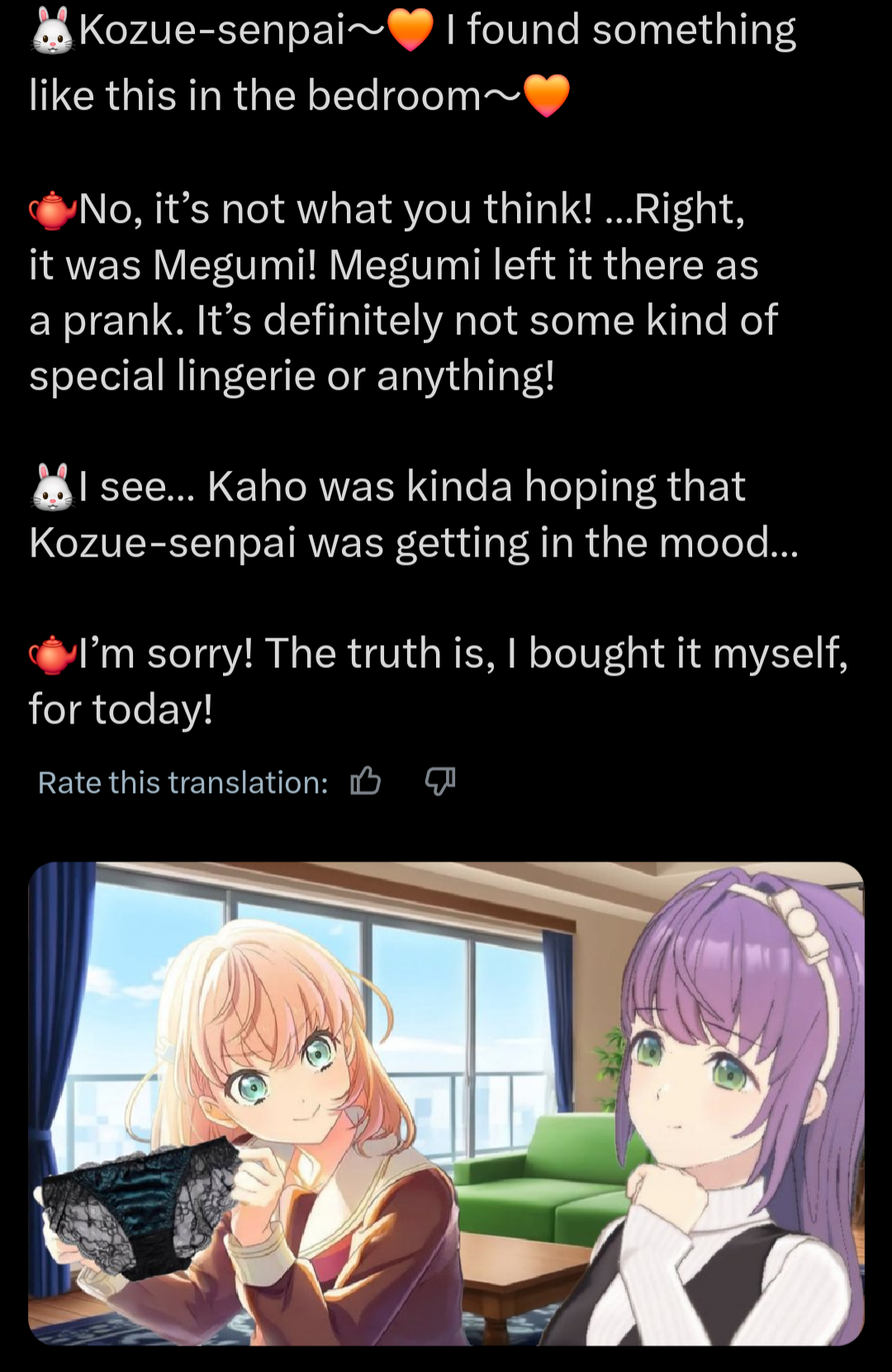 >>542321361https://x.com/akumagyaru/status/1976858816655573142https://x.com/akumagyaru/status/1977174239523541442why are love live fans so toxic?