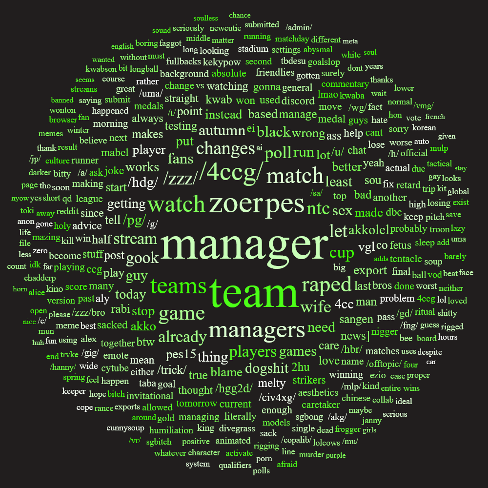 Previously: >>541959453 >What... is this?Put simply, a simulation of Pro Evolution Soccer being competed between teams which are embodiments of boards of the 4chan imageboard. The players represent facets of each board's culture. All of the matches are AI versus AI. However, humans "manage" each team, creating their tactics and giving input during games as they happen to make substitutions and tactical changes as they see fit.https://implyingrigged.info/wiki/FAQ>Where can I watch the cup?https://isthisliv.com/4cc/stream.html>Current Cup https://implyingrigged.info/wiki/2025_4chan_Autumn_Babby_Cup_Qualifiershttps://implyingrigged.info/wiki/2025_4chan_Autumn_Babby_Cup>Current Invitationalshttps://implyingrigged.info/wiki/Akko_League_VI:_Retard_Emblem_(Integrity_Default)>Upcoming Invitationalshttps://implyingrigged.info/wiki/New_Thread_Cup_4https://implyingrigged.info/wiki/Divegrass_Before_Christmas_6:_This_can%27t_wait_a_month>Wiki:https://implyingrigged.info/wiki/Main_Page>Sekkrit Code37pebis>DLC Passworddivegrass>Booruhttps://isthisliv.com/booru/>Other videoshttps://implyingrigged.info/wiki/Videos>PES Infohttps://implyingrigged.info/wiki/Pro_Evolution_Soccer_2015>previously/t/ is ded, /int/ is throughNTC has startedShitposting
