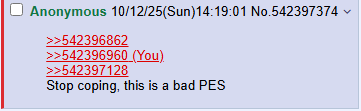 >>542371287Don't ask me, I don't even play PES or watch the matches. I just shitpost /here/.