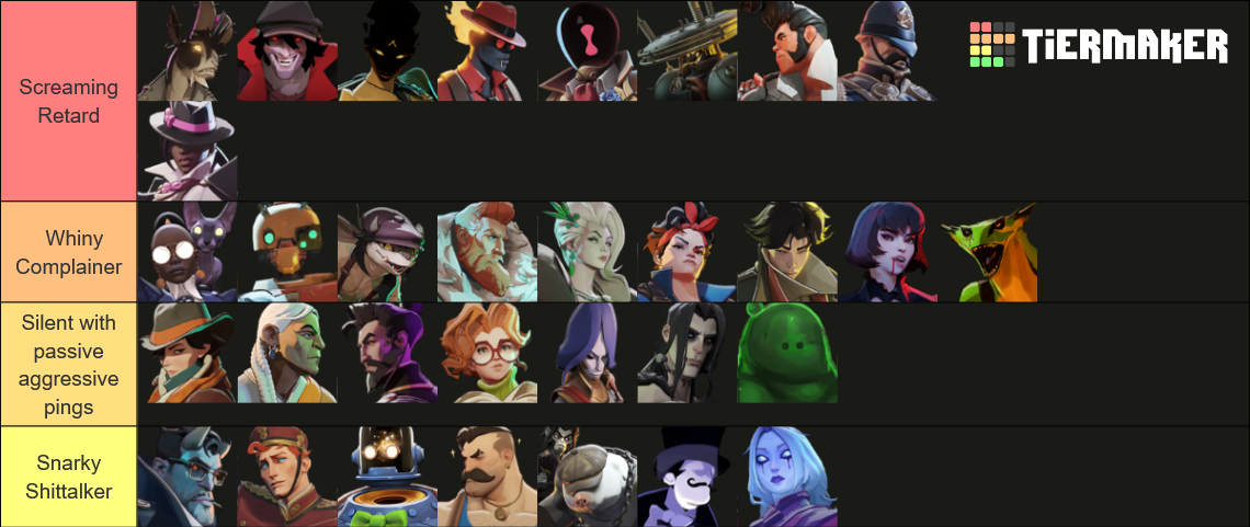 I would be best friends with the "sex with doorman" poster i bet>>542413948Does he have any interest in the lore or the artistry of the game? Thats what got me hooked. If he doesnt care about that and he doesnt enjoy gameplay, hes cooked and would be better off playing something else. Whenever I rage and delete the game im brought back by an update and the desire to see those cute and cool characters again.>>542414124If youre ass, maybe you need to start practicing advanced movement, aiming, and experiment with your items some more until you hit a breakthrough. Who do you play as? I used to be really bad but im working my way out and the feeling of improving tangibly is as good as any drug. Sorry to turn your post complaining about your teammates on you, im sure they are ass, but it could be reflective of your own gameplay that youre being paired with them. Or, after a week or two the ranks will have shifted and you'll have a better time. Either way as you wait for the passage of time to answer that, getting sweaty with practice should only help.