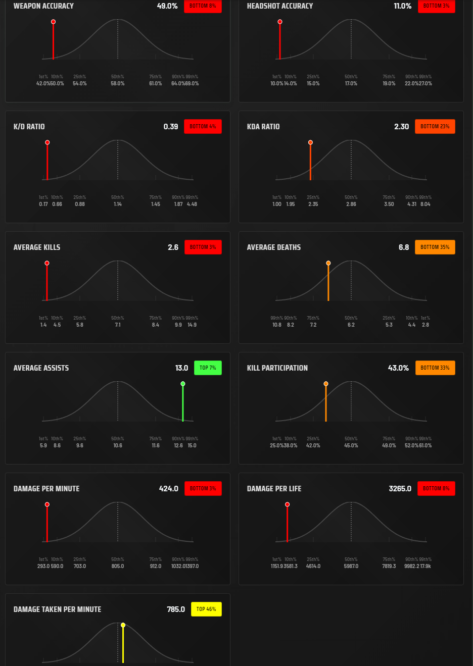 my games have been so bad these past few days, i can barely manage a win. this is what i get for playing a shooter past 30, i never shoulda quit playing AoE 2... i'm washed, /dlg/, and i've accepted it.