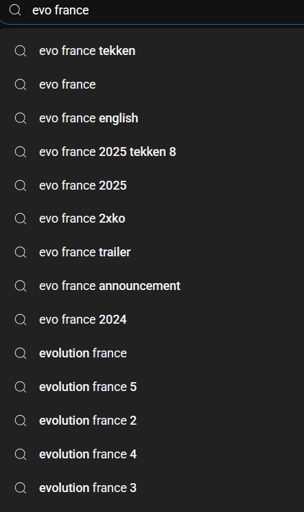 when you type evo france on youtube the autocompletion says tekken