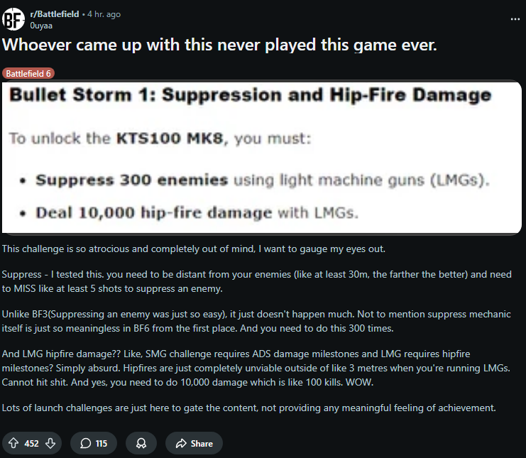 >>542383473It's the grind. Unlocks in previous games were reasonable, this time around they're just brutal. Not War Thunder brutal but 2042 was way Way WAY more lenient from the 50 hours of it I played after I got it for 3 bucks a bit over a month ago.