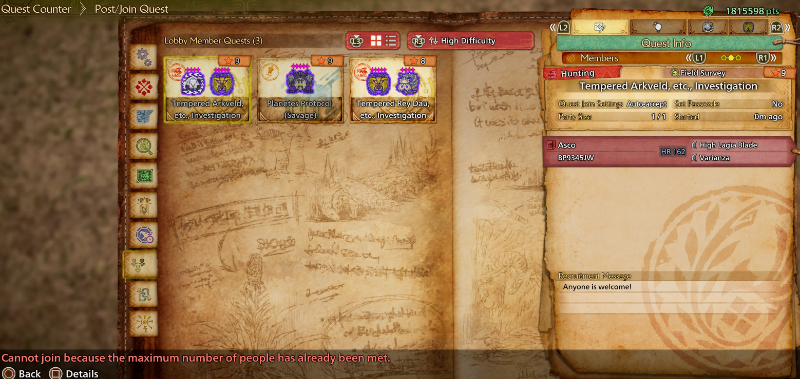 >I have a question about Monster Hunter!https://pastebin.com/D3zuHuqK >MH WildsWilds info: https://www.monsterhunter.com/wilds/en-us/Steam page: https://store.steampowered.com/app/2246340/Monster_Hunter_Wilds/Event quest schedule: https://info.monsterhunter.com/wilds/event-quest/en-us/scheduleTU3 trailer: https://www.youtube.com/watch?v=ca1iBhq-C90TU3 info: https://info.monsterhunter.com/wilds/update/en-us/Ver.1.030.00.00.htmlWhy (and how to) join the /mhg/ lobby: https://i.imgur.com/M7MmPid.jpeg >MH RiseSunbreak TU info: https://www.monsterhunter.com/rise-sunbreak/update/en-us/Hunter connect: https://pastebin.com/Tp9t570yArmor set search: https://mhrise.wiki-db.com/sim/?hl=enMonster weakness database: https://robomeche.github.io/MHRise-Database/DLC unlock: https://pastebin.com/2DdDQiBT >MH WorldIceborne info: https://www.monsterhunter.com/world-iceborne/World is now Steam Deck verified! https://store.steampowered.com/news/app/582010/view/3738609511464820653General info: https://pastebin.com/TxqC68h7>Older game emulation and multiplayer/Frontierhttps://pastebin.com/fYyeU0kY >Databaseshttps://kiranico.com/https://sites.google.com/site/pingsdex >Where does /vg/ play?Post the game, platform, room code, and password (7243/rage)/mhg/ has its own squad in Wilds: RL9XQ7VM >/mhg/ OP pastebin (use this when making new threads)https://pastebin.com/rYHCaKT3 Previous thread: >>542315480