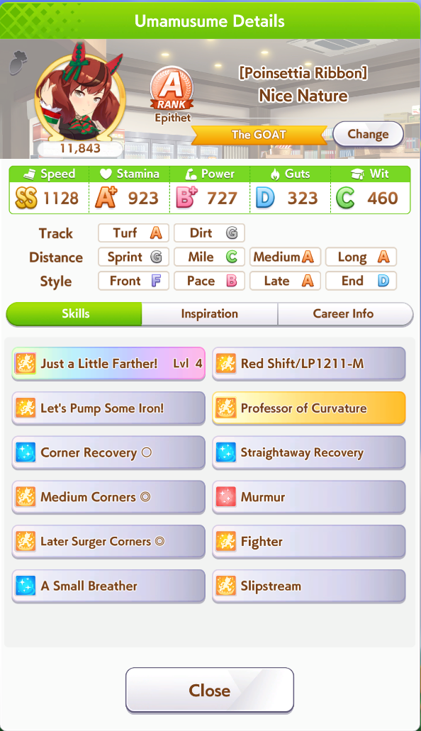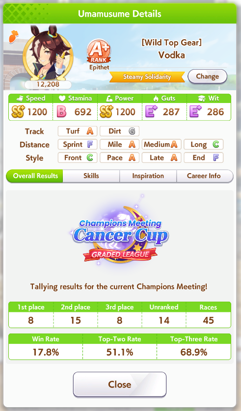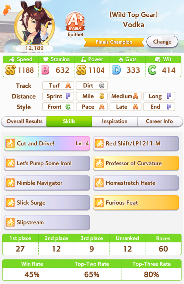 Well, those anons were right I guess. If I get pretty lucky with my rainbows I can potentally reach 1.2k Speed and 1k Stam. Guess I'll keep trying to do my best for a Nice Natie Ace for CM4! I really do wanna make her win, she's so cute.