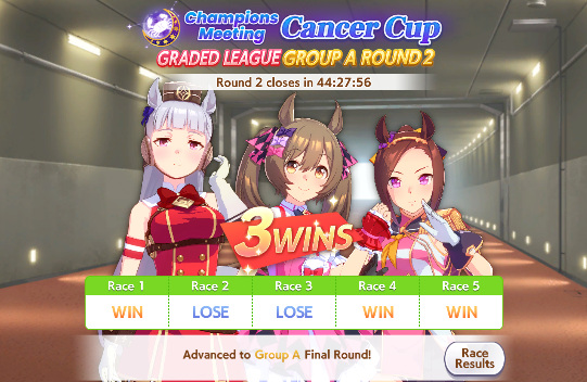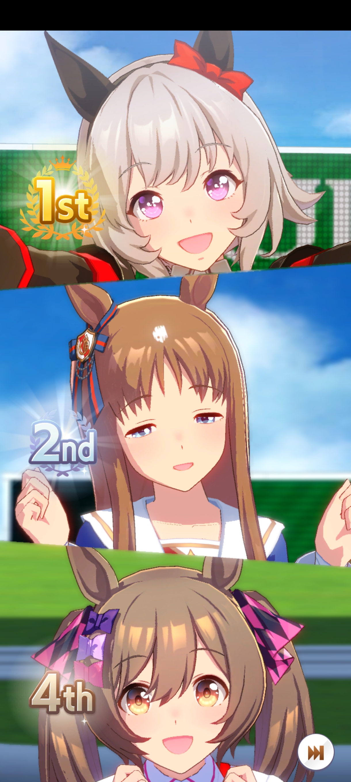It really bothers me that they don't play the victory cheer when your second or third slot uma winsI don't wanna see Uodka sad for coming in second to her teammate :(