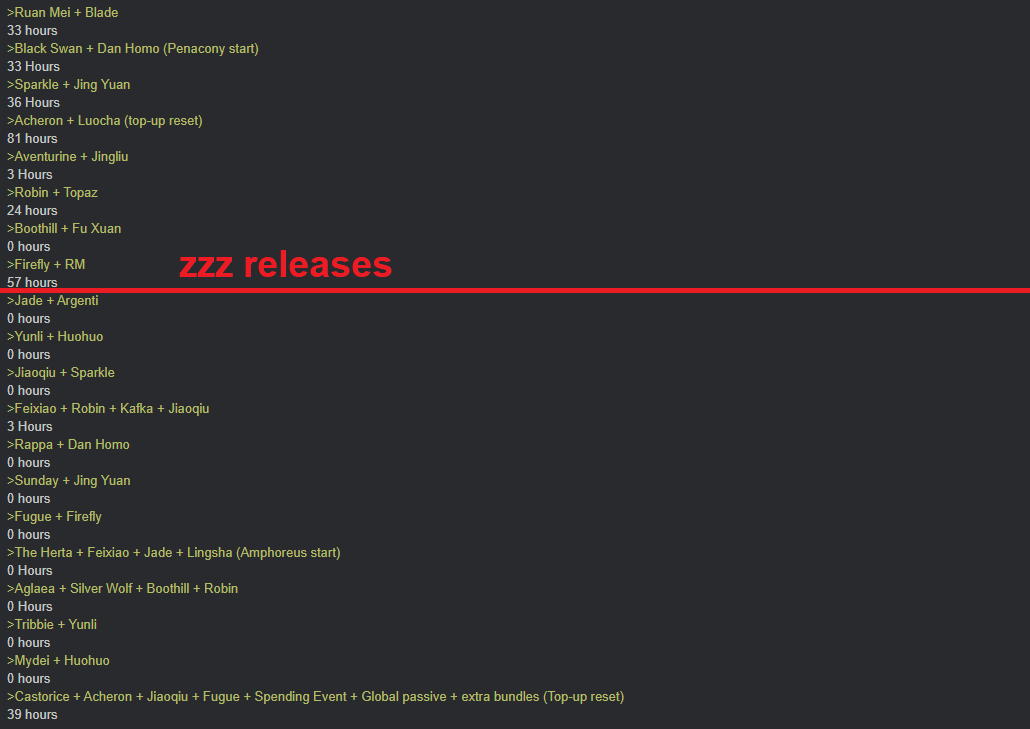 >Current Character Banners: Evernight, The Herta + Misha, Guinaifen, Xueyi - https://www.hoyolab.com/article/41303901