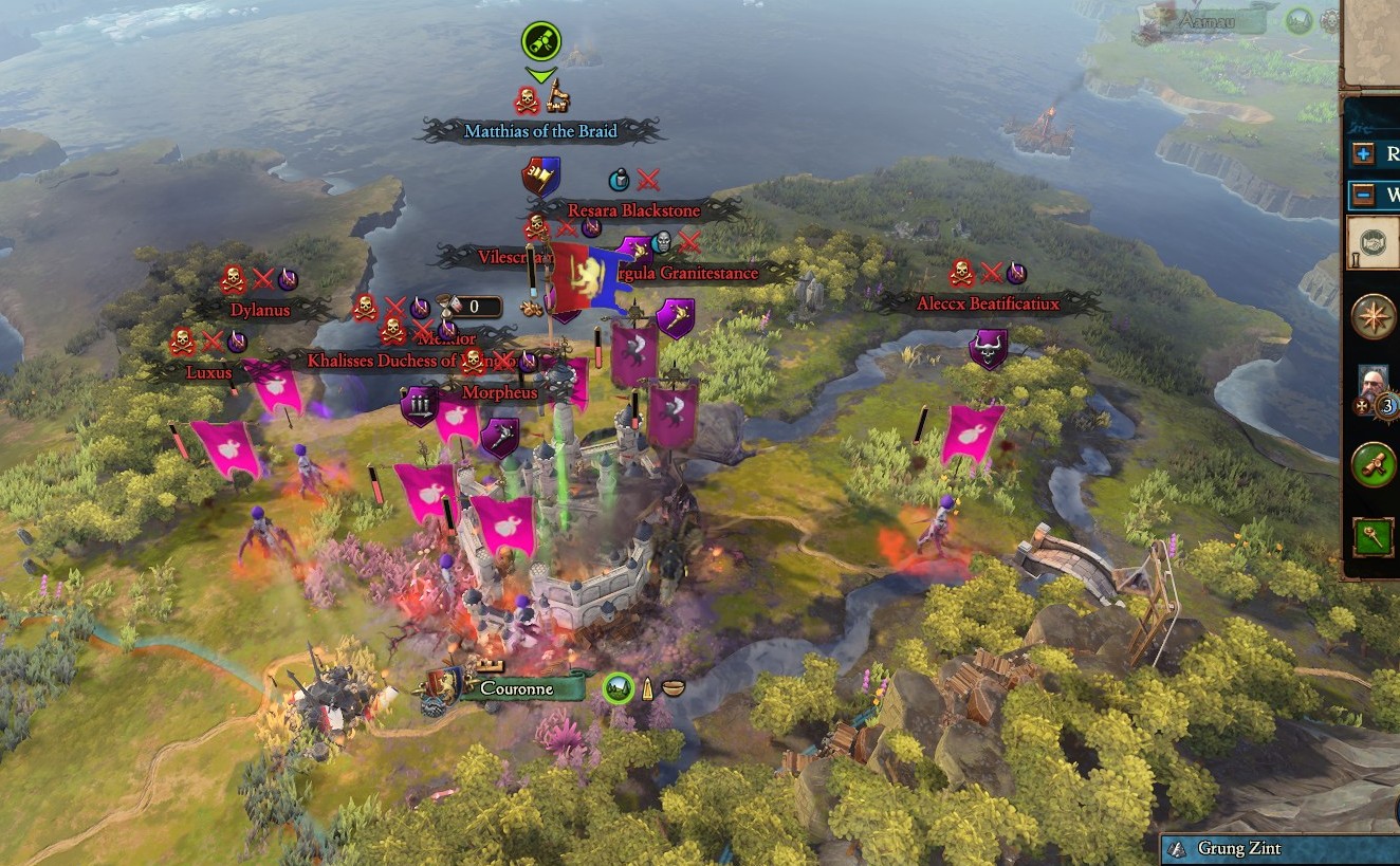 huh, there's the lake in the distance. wow, it's really cool that the battle maps actually reflect the campaign map, if only warhammer did the same!