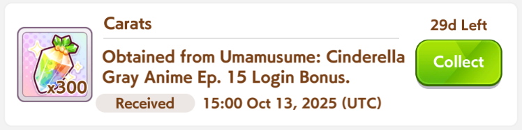 Previous: >>542478780>JP Game NewsCurrent Rate Up: Hishi Akebono (Alt 3*), Marvelous Sunday (Alt 3*), Fuji Kiseki (SSR), Eishin Flash (SSR)10/7 - Legend Race vs NTR and Super Creek (Alt)Early October - Tachyon's Factor ResearchLate October - New training scenarioOctober: CM Sprint - Niigata 1200mNovember: LoH Dirt - Morioka 1600mDecember: CM Mile (No debuffs) - Hanshin 1600m>Global Game NewsCurrent Rate Up: Gold City (3*), Nishino Flower (SSR), Vodka (SSR)10/7 - CANCER CUP - Tokyo 1600m10/14 - Summer Maruzensky (Alt 3*), Summer Special Week (Alt 3*), Sweep Tosho (SSR), Winning Ticket (SSR)10/14 - Summer Story event10/21 - Meisho Doto (3*), Special Week (SSR), Tokai Teio (SSR)10/26 - Half Anniversary Part 110/30 - Eishin Flash (3*), Nice Nature (SSR), Tosen Jordan (SR)10/30 - LEO CUP - Hanshin 2200mTimeline: https://uma.moe/timeline>IP NewsUmamusume Cinderella Gray 2nd cour will air on 10/5Umamusume 6th Live Event Autumn Leg will be held on 10/18-19Guest Starring:Alexandros, Ooishi Masayoshi (Day 1), Kageyama Hironobu (Day 2)https://umamusume.jp/contents/event/tnf6th-autumn/>Thread CirclesJP: ウマオオオオ (20 million/month), PUMA, ウマぴょいのまにまに (No quota)EN: https://rentry.org/globalclubsumaYou must be E3 (20k points) to join a circle. Apply with /uma/ or /vg/ in your profile or post ID in the thread.>All Guides & Resourceshttps://rentry.org/uma26Game databasehttps://gametora.com/umamusume (Click the gear to switch between JP / global server info)A basic guide for newfagshttps://rentry.org/umaglobalFind networks if your region is blocked from the game or clienthttps://www.umavpn.top/93Seiyuu & Concertshttps://rentry.org/umst/uma/ POG (Paper Owners Game)https://rentry.org/umapog