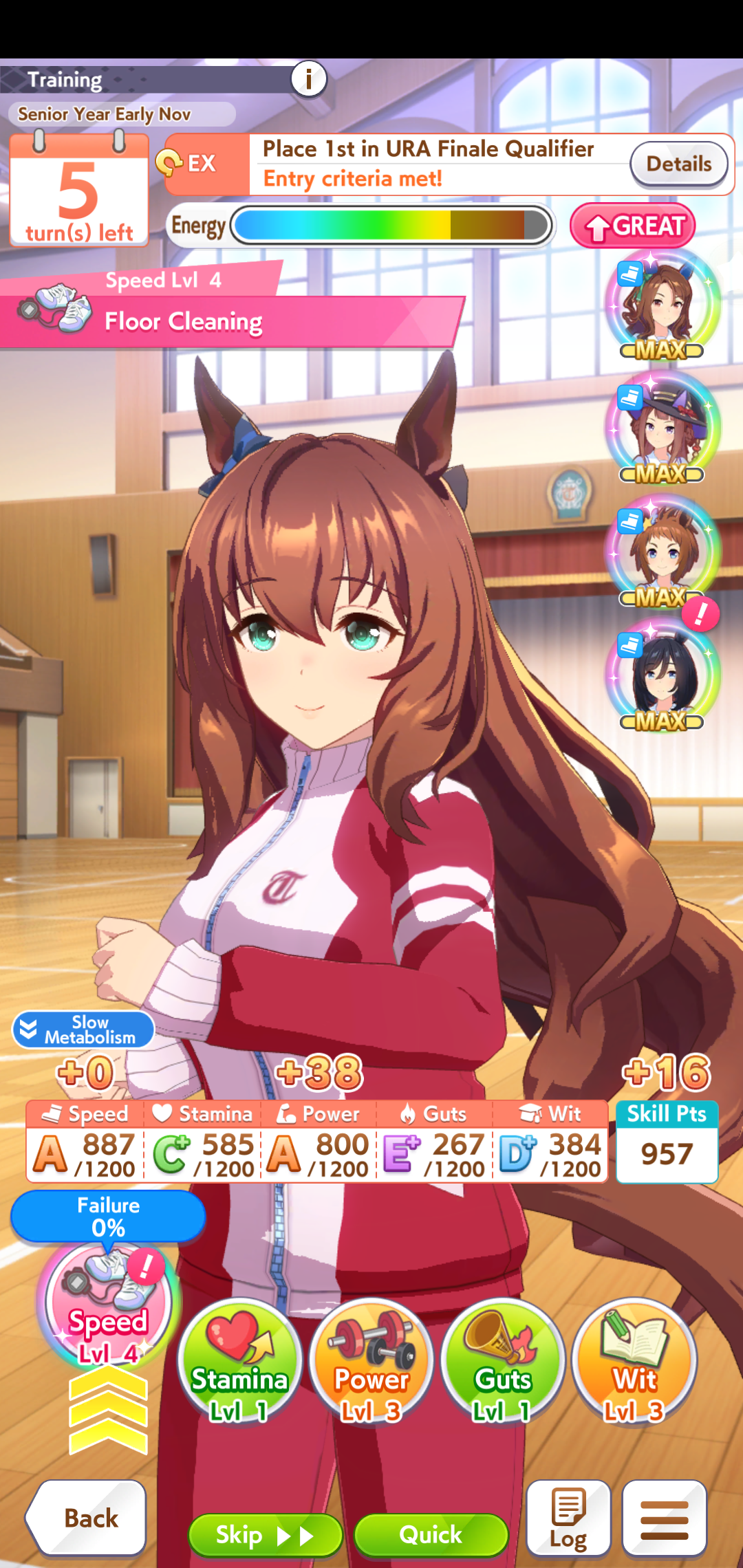 >>542497272If you cap speed faster doesn't that mean you have more turns to spend pressing power training to make up for it?