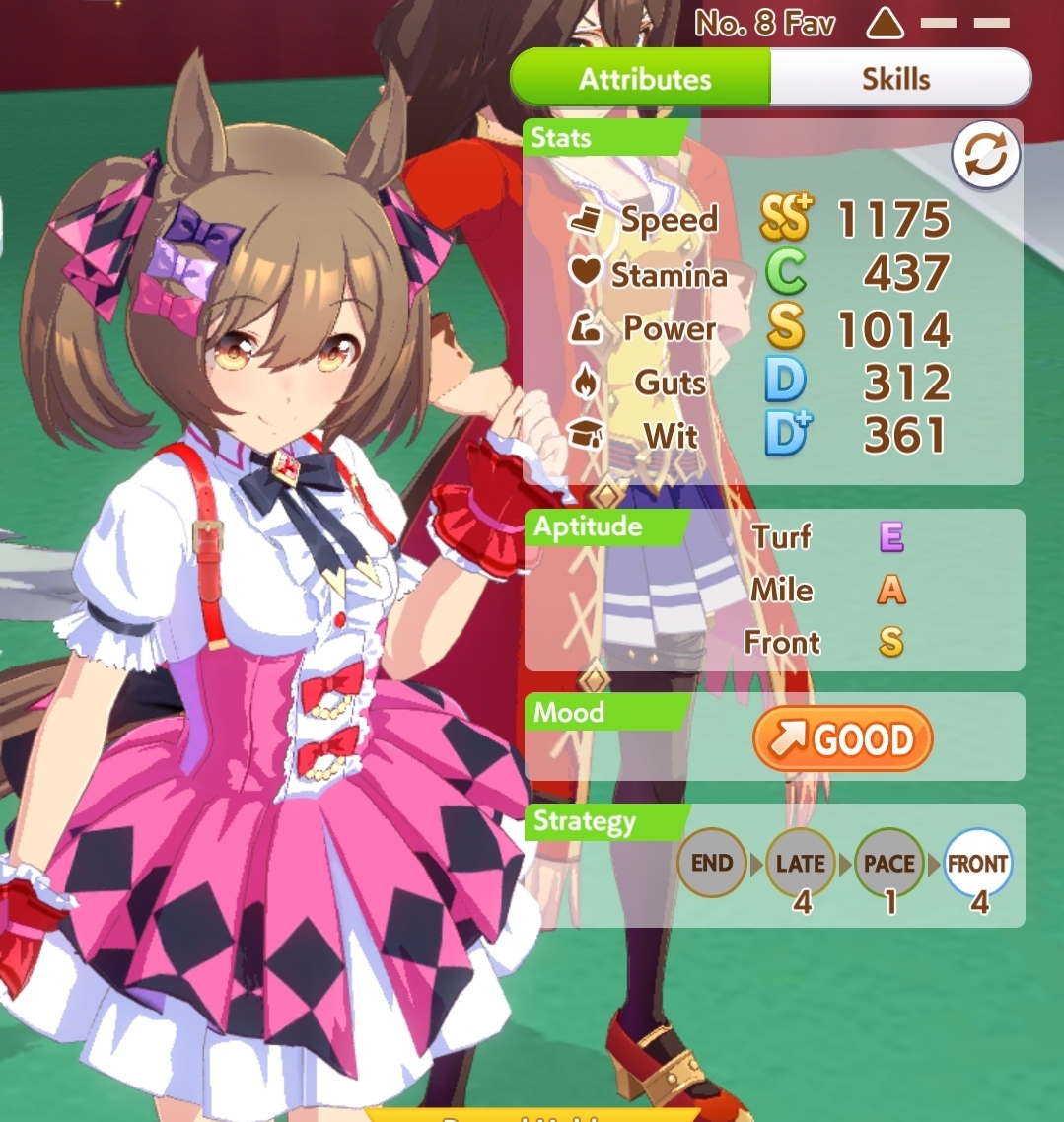 >>542516101The really strong Late in the room tends to be my Nature, somehow, who has just as many wins as Pasa.>>542516134She's my dirt TT ace.