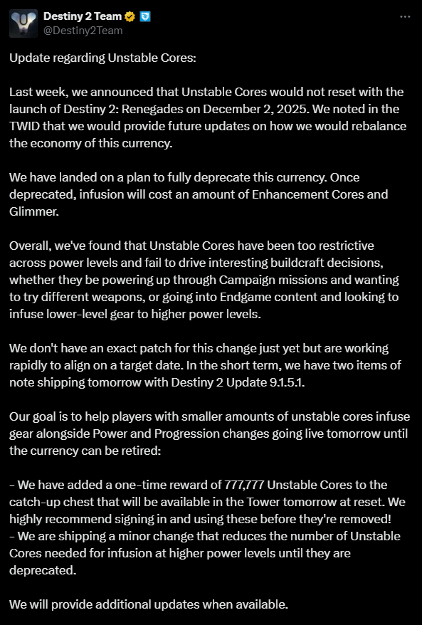 >https://x.com/Destiny2Team/status/1977874828293222508tl;dr